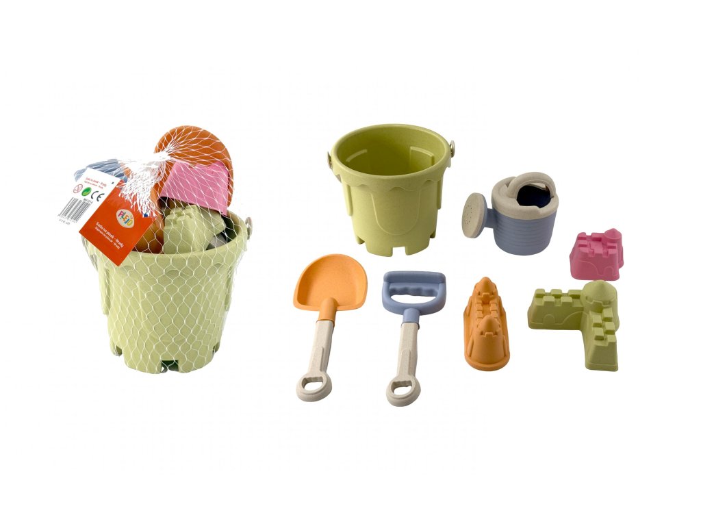 Sada písek - Hrady Veselá barevná sada na písek. Postavte pomocí báboviček dokonalý hrad z písku. Sada obsahuje: kyblíček lopatička hrabičky konvička bábovky ve tvaru hraduDoplňkové parametry