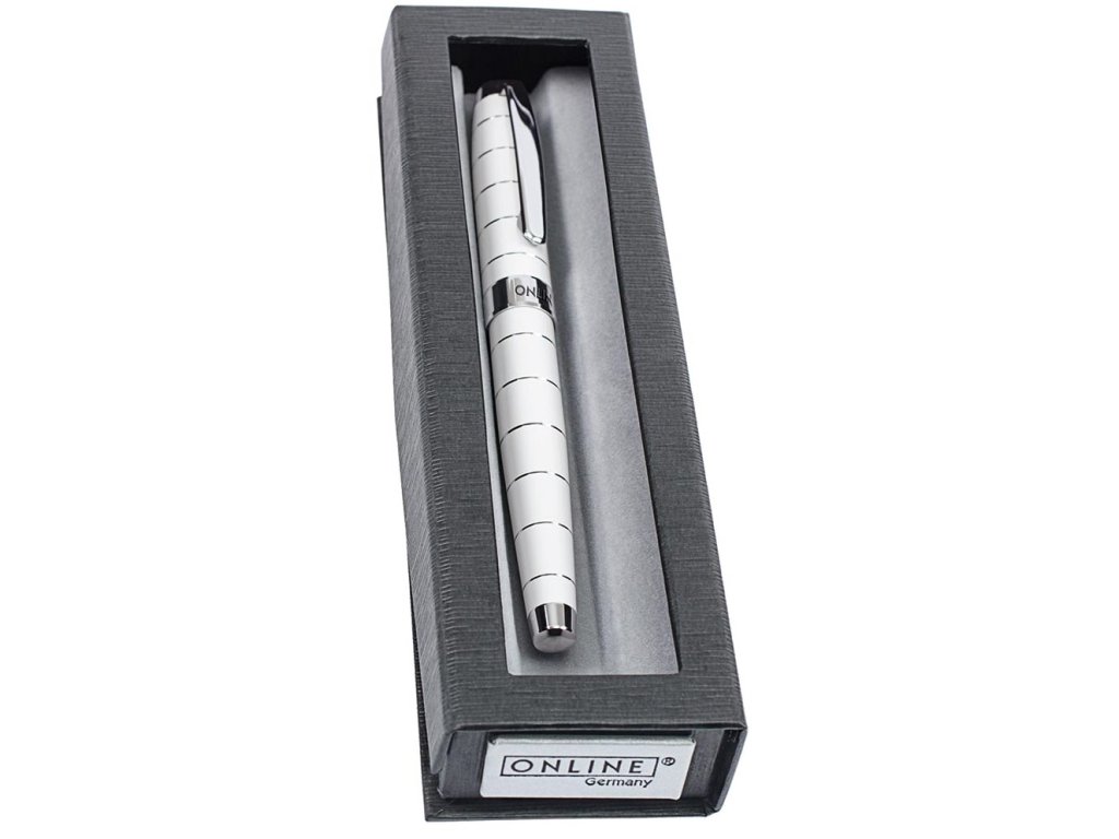 ZnačkaONLINEČlánek č.38260PopisPlnicí pero Lined White od online, vyrobené z kovu v nadčasovém designu, vybavené elegantní pružinou M (medium), nabízí nejvyšší komfort psaní. V charakteristické štíhlé krabici je každý z těchto psacích nástrojů elegantním dárkovým nápadem.Doplňkové parametry