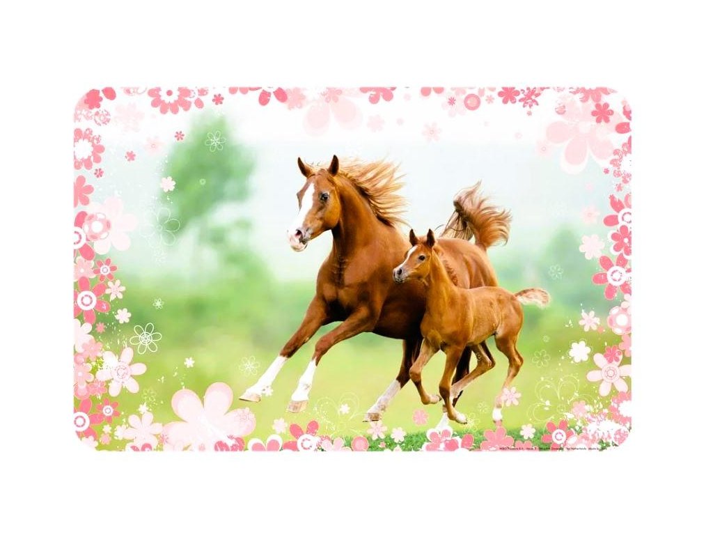 Podložka na stůl s motivem Koně. Rozměry: 43 x 28 cm. Materiál: 100% PVC. Slouží jako jídelní podložka nebo ochrana stolu při psaní, malování či hraní. Chrání povrch stolu před poškrábáním, nečistotami a skvrnami. Je vyrobena z lehce omyvatelného plastu, konkrétně 100% PVC. Rozměry se pohybují kolem 43 x 28,5 cm. Je vhodná pro děti od 3 let. Výrobce: WO products 6900 Zevenar Nizozemí info@wo-products.nlDoplňkové parametry