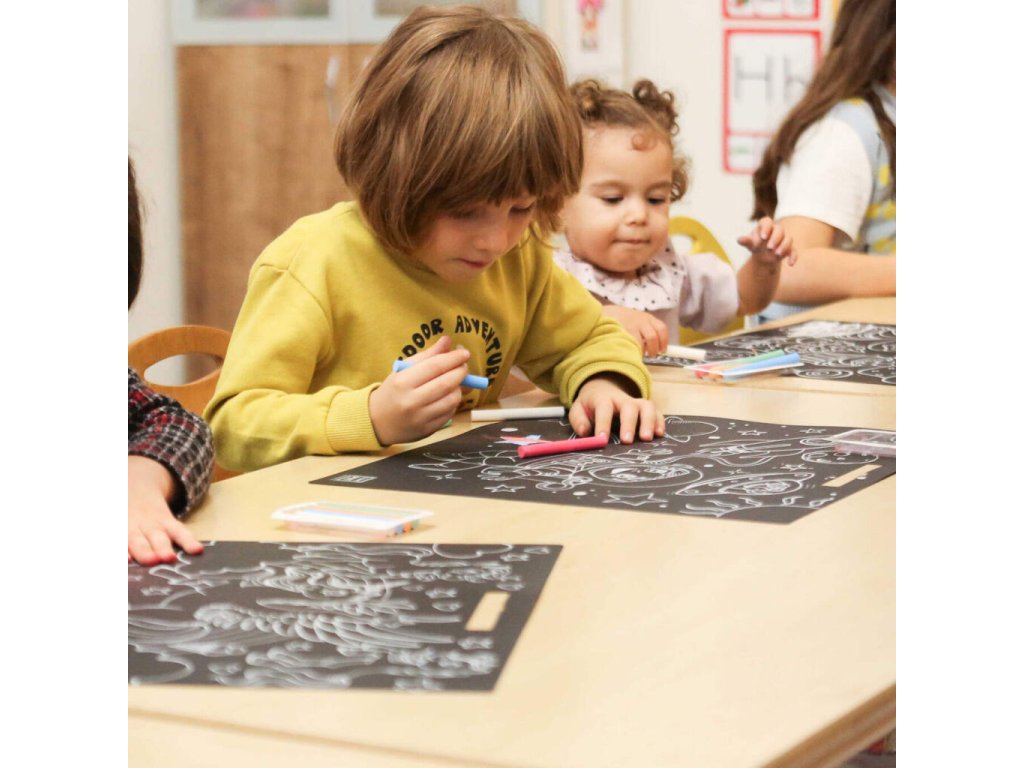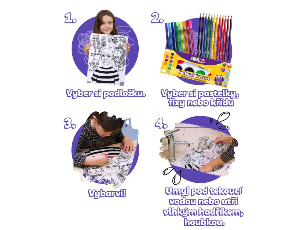 Černá podložka s předlohou na kreslení, opakovaně použitelná. Velikost 40 x 40 cm + křídy zdarma.Doplňkové parametry