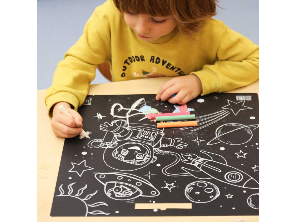 Podložka na kreslení FUNNY MAT - Space + křídy zdarma