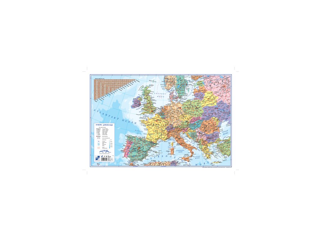 Tuhá podložka 60 x 40 cm na pracovní stůl s mapou Evropy. Na levé straně mapy je umístěná průhledná záložka na ukládání vizitek, vzkazů atd?.? Chrání pracovní stůl před poškozením a zároveň slouží jako edukační pomůcka.Doplňkové parametry