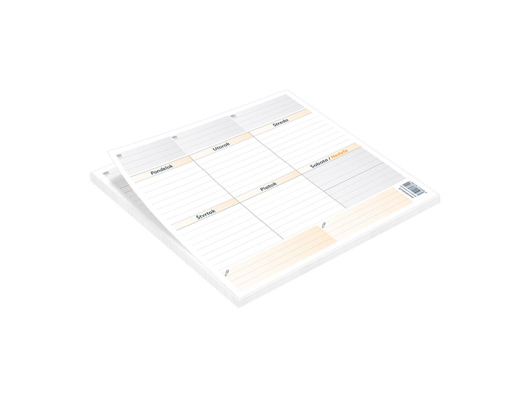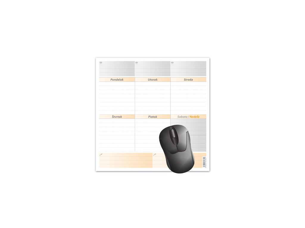 Formát: 210 × 210 mm. Lepená väzba, ofsetový papier, 52 trhacích listov. Cena za 1 ks výrobku. Veľmi obľúbená a účelná pracovná pomôcka – podložka pod myš a zároveň poznámkový blok s možnosťou týždňového plánovania.Doplňkové parametry