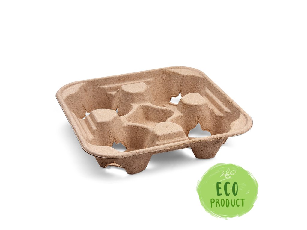Papírový podnos na 4 sklenice, ekologicky nezávadný, vyrobený z recyklovaného papíru. Vhodný na nošení sklenic TO GO .Poháre v nich pevně drží a eliminuje se jejich rozlití.Doplňkové parametry