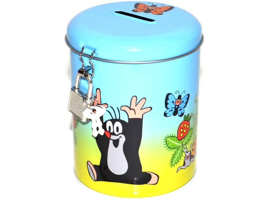 Pokladnička Krtek válec se zámkem plechová 9x11cm