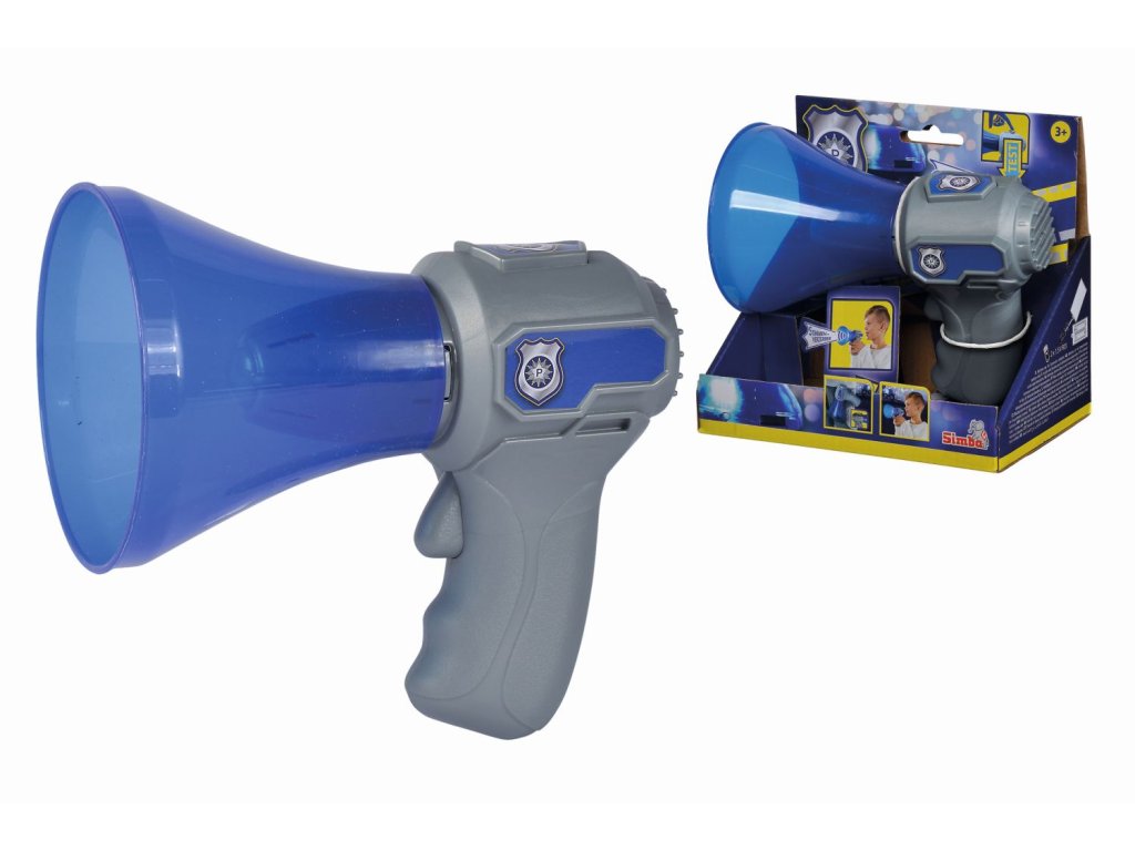 Policejní megafon s funkcí změny hlasu, tlačítko siréna, klip pro upevnění. Velikost 16 cm.Doplňkové parametry