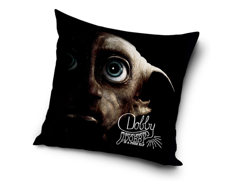 Na obou stranách polštářku je stejný, působivý motiv skřítka Dobbyho z filmové ságy Harry Potter