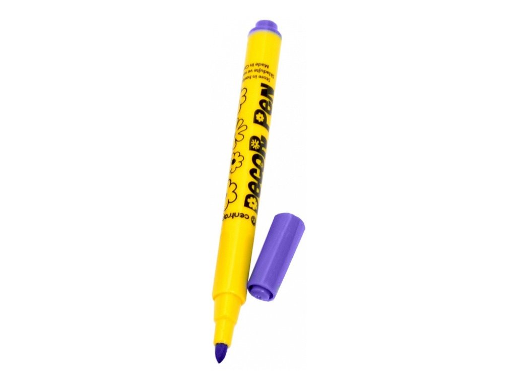 Decor Pen - 2738/1 - fialový. Popisovač je určen pro kreativní a výtvarnou činnost. S popisovačem Centropen 2738 můžete psát na všechny běžné povrchy jako keramika sklo, plast, lakovaný papír, fólie a podobné materiály. Tento zvýrazňovač obsahuje světlostály pigmentový inkoust na vodní bázi, který má vynikající krycí schopnosti. Po zaschnutí (cca 4 hodiny) je stopa odolná vůči otěru a vodě. Šíře stopy: 1,5 mm Ergo držení Světlostálý inkoust Válcový hrotDoplňkové parametry