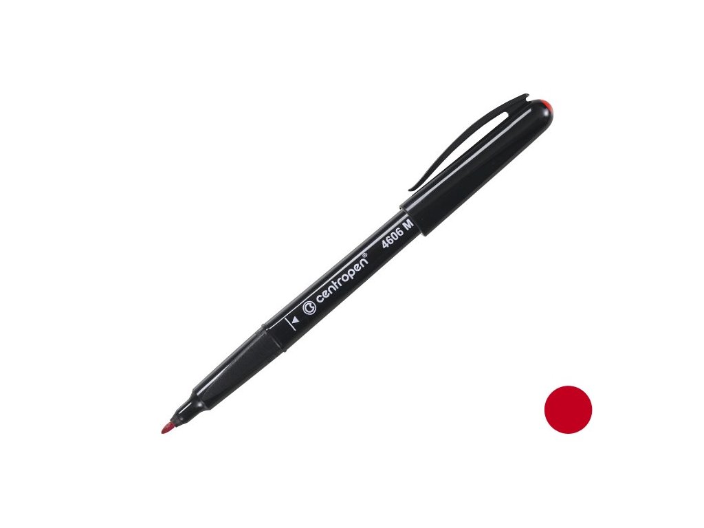 Popisovač Centropen 4606 CD červené barvy. Válcový hrot a šířkou stopy 1 mm. Speciální popisovač v novém designu s ergonomickou úchopovou zónou. Určený především k popisování CD/ DVD/ BD, rámečků, diapozitivů, fólií a jiných plastů. Permanentní inkoust na alkoholové bázi, stopu lze odstranit lihem. Z disků šetrně stírat od středu k okrajům. Ventilační chánítko, po použití uzavřít.Doplňkové parametry
