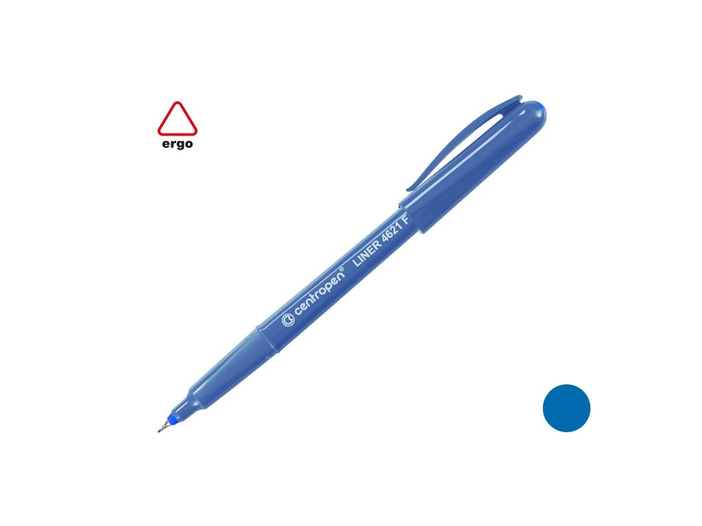 Popisovač Centropen 4621 modré barvy. Jemný plastový hrot v kovové objímce s šířkou stopy 0,3 mm. Liner s novým ergonomickým designem. Vhodný pro psaní na papír, kreslení, skicování. Nevysychavý inkoust bez zápachu na vodní bázi. Vydrží i 14 dní bez chránítka.Doplňkové parametry