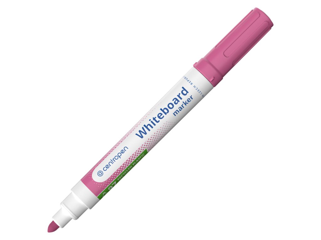 Stíratelný značkovač na bílé smaltované tabule, PVC, sklo, porcelán. Inkoust je za sucha stíratelný, světlostálý, Náplň je zdravotně neškodlivá, valcový hrot s průměrem 5 mm, šírka stopy 2,5 mm. Skladujte ve vodorovné poloze. Barva růžová.Doplňkové parametry