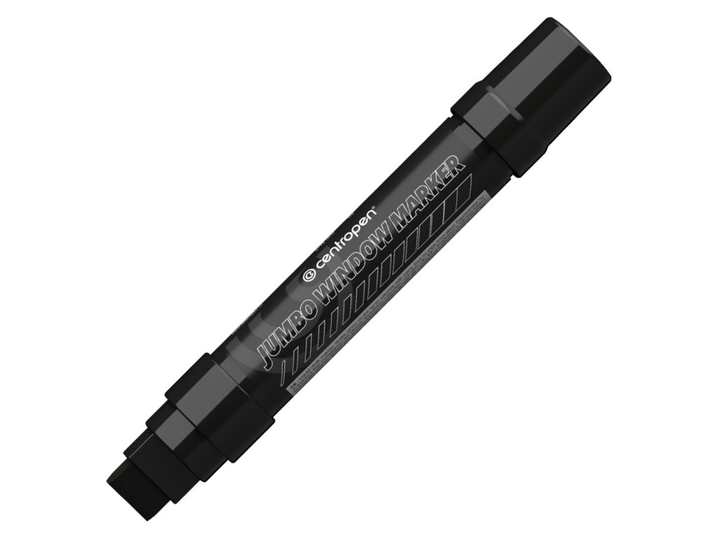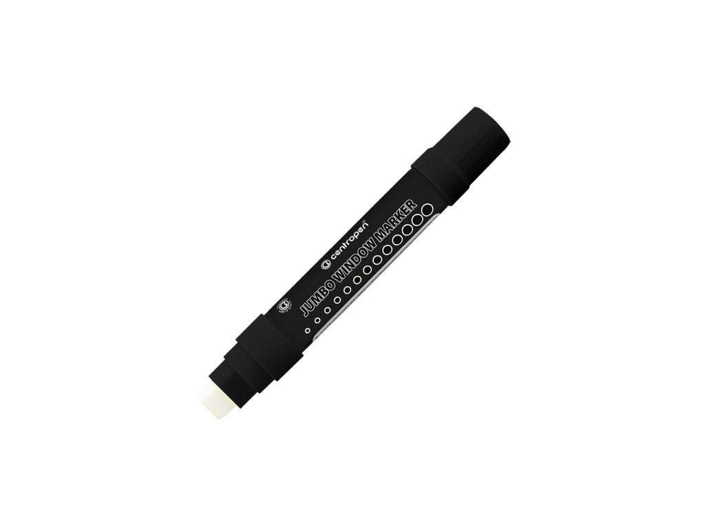 Velkoobsahové značkovač Jumbo s přepouštěcím mechanismem, vhodný na popisování oken, výloh, zrcadel a automobilových skel. Díky velké krycí schopnosti a zářivým barvám inkoustu jsou nápisy velmi dobře videteľné iz velké dálky. Značkovač je plněný tekutou křídou na vodní bázi, která rychle zasychá a dá se snadno setřít suchým nebo vlhkým hadříkem. Obdélníkový hrot může vytvořit stopu šíře 2 - 15 mm. Barva černá.Doplňkové parametry