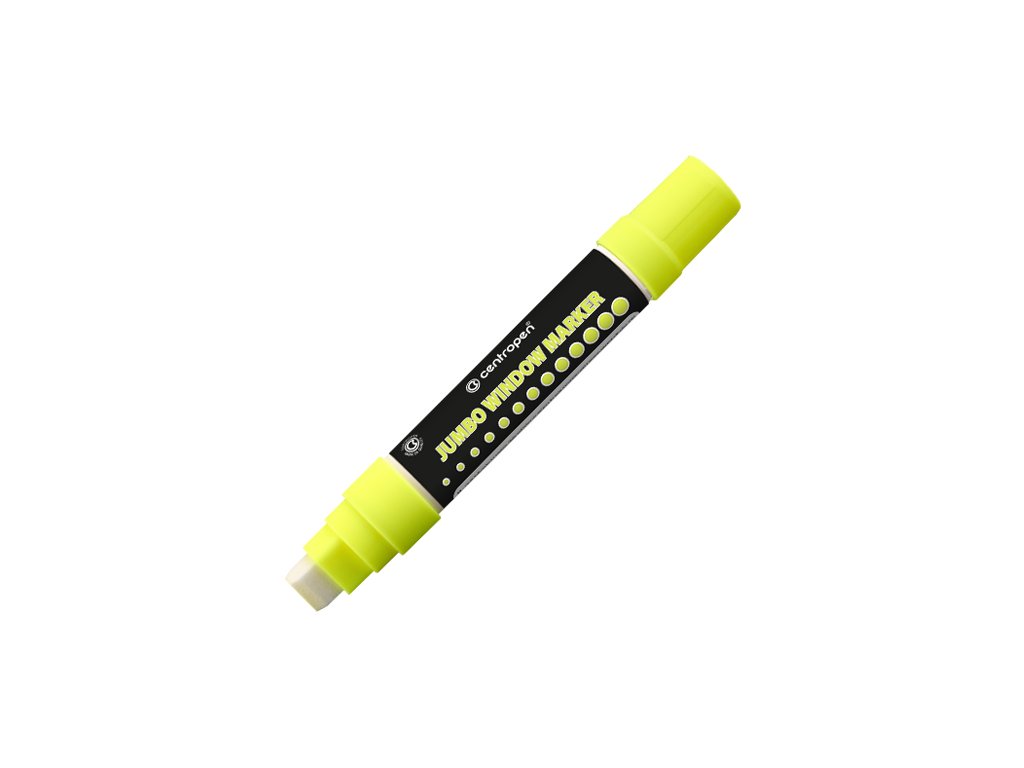 Velkoobjemový popisovač Jumbo s přepouštěcím mechanismem, vhodný na popisování oken, výkladů, zrcadel a automobilových skel. Díky velké krycí schopnosti a zářivým barvám inkoustu jsou nápisy velmi dobře videtelné i z velké dálky. Popisovač je plněný tekuDoplňkové parametry
