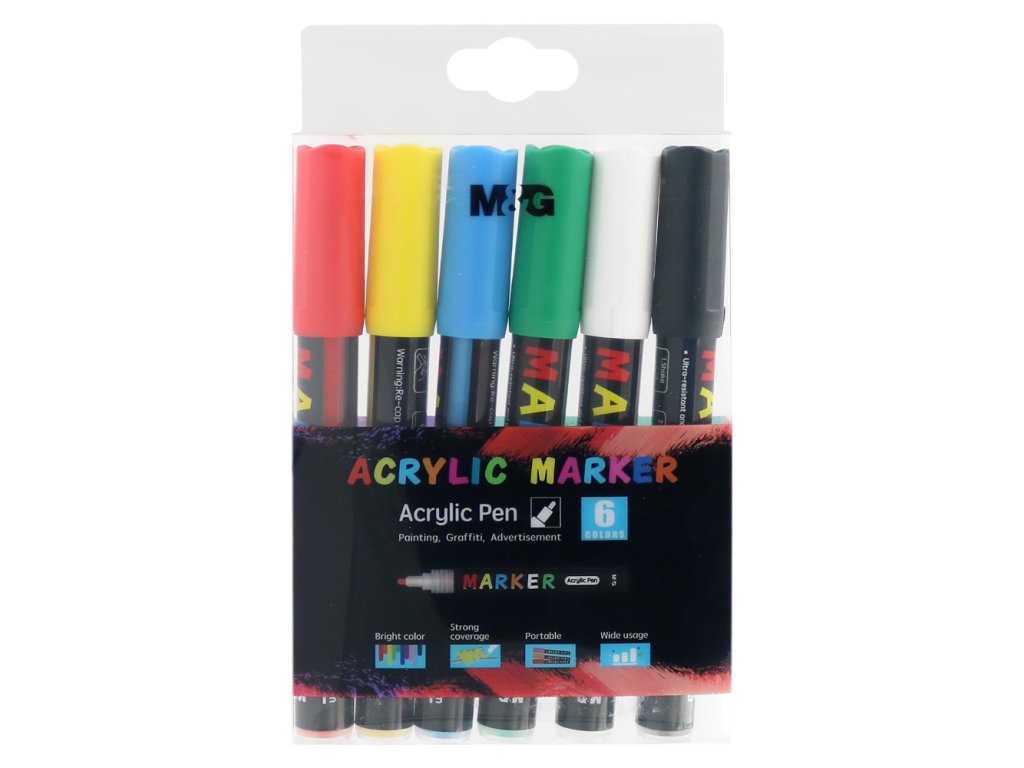 Popisovač M&G Acrylic Marker Basic, hrot 2 mm - sada 6 ks