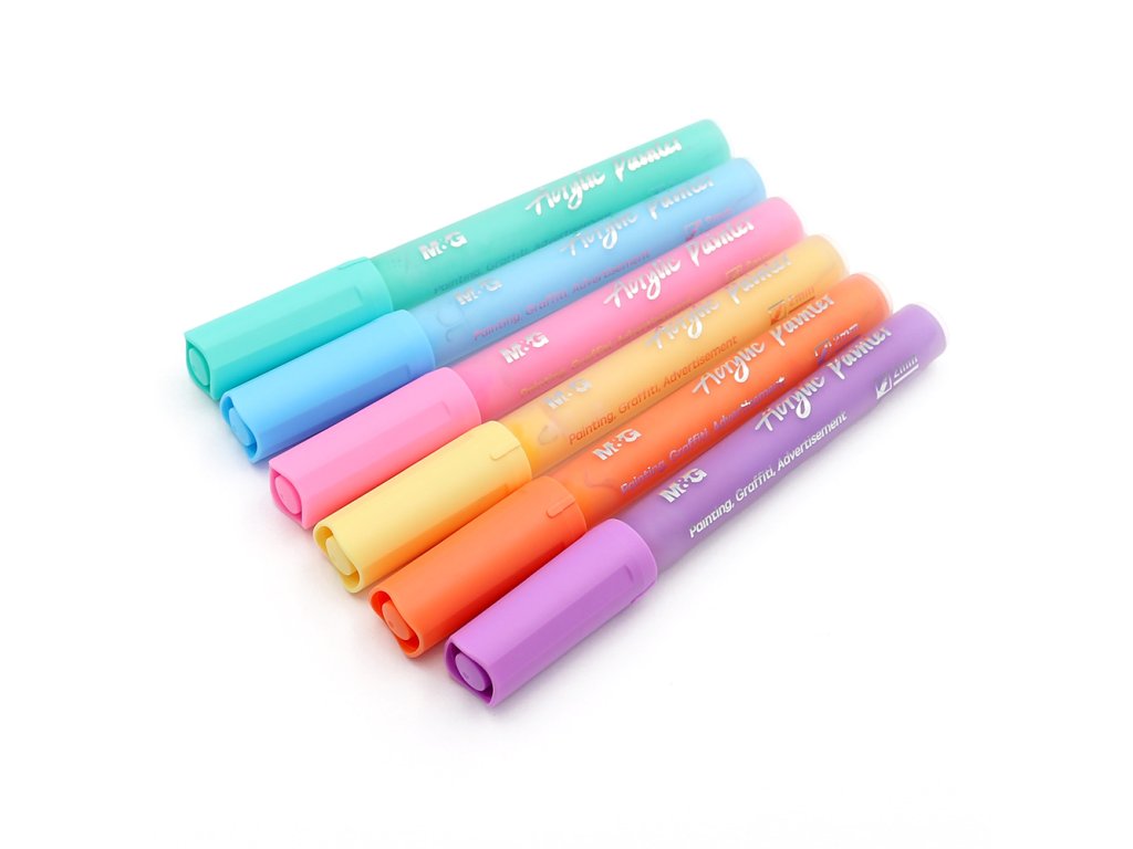Popisovač M&G Acrylic Marker Pastel, hrot 2 mm - sada 6 ks
