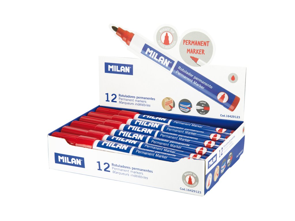 Popisovač MILAN Permanent Marker - ČERVENÝ na plasty, sklo, gumu, kůži, kovyDoplňkové parametry