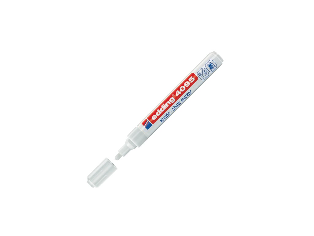 Popisovač na sklo, černé tabule a karton tmavé barvy. Kulatý psací hrot střední tloušťky. Plněný tekutou křídou na bázi vody. Za sucha smazatelný z neporózních povrchů vlhkou utěrkou. Syté, zářivé barvy. Šíře stopy: 2-3 mm. Barva: bílá.Doplňkové parametry