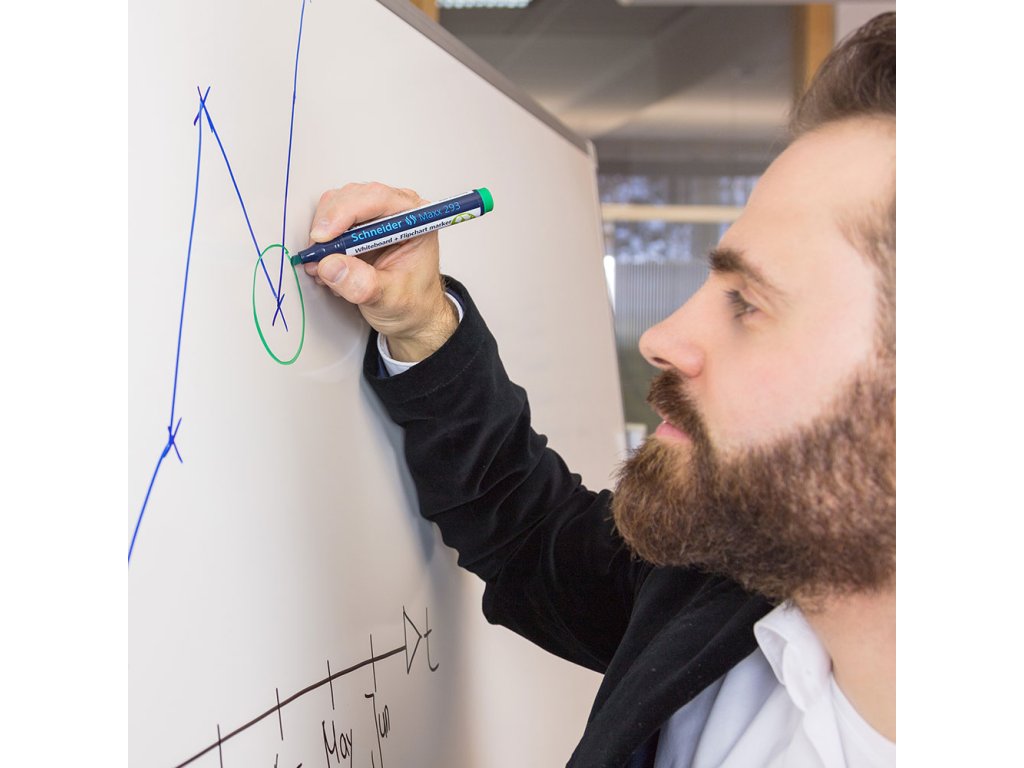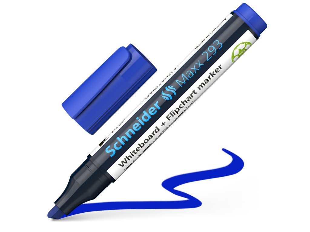 Schneider Maxx 293 je popisovač určený na popisovanie bielych a flipchartových tabúľ so zrezaným hrotom.