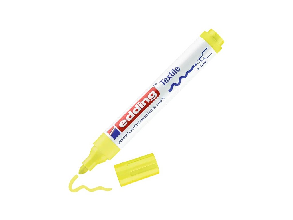 Popisovač na textilie s kulatým hrotem střední tloušťky, plněný inkoustem bez zápachu na bázi vody.