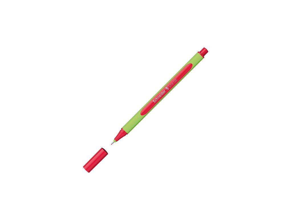 Popisovač Schneider Line-Up 0,4 mm červená. Liner s vláknitým hrotem zapuštěným v kovovém pouzdře. Pogumované trojhranné tělo pro pohodlné psaní, vyrobeno z bioplastu. Ideální pro kreslení i psaní. Víčko a koncovka v barvě náplně. Hrot o šíři 0,4 mm.Doplňkové parametry