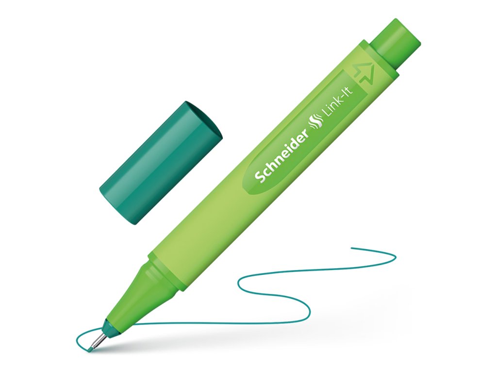 Popisovač Schneider Link-It 0,4 mm tyrkysová. Klikk! Inovativní, spojitelné linery a fixy, které po spojení tvoří pero s 2 hroty po spojení vzniká 1 popisovač, který zajistí úsporu místa na stole, nebo v penále Link-it linery a fixy lze libovolně spojovat v 16 různé barvy pogumovaný, trojúhelníkové tvar těla pro pohodlné psaní tělo v 88% z plastu s BIO Základem barva víka se shoduje s barvou inkoustu inkoust na bázi vody.Doplňkové parametry