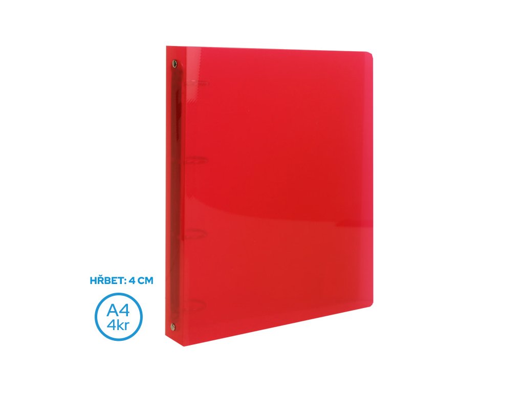 Pořadač LUMA A4/40mm 4 kroužkový červený: - PP materiál- rozměr: 245 x 315mm- tloušťka: 0,98mm- 4 kroužky- hřbet: 40mm- vhodné pro ukládání děrovaných volných listů či dokumentů v eurosložkáchDoplňkové parametry