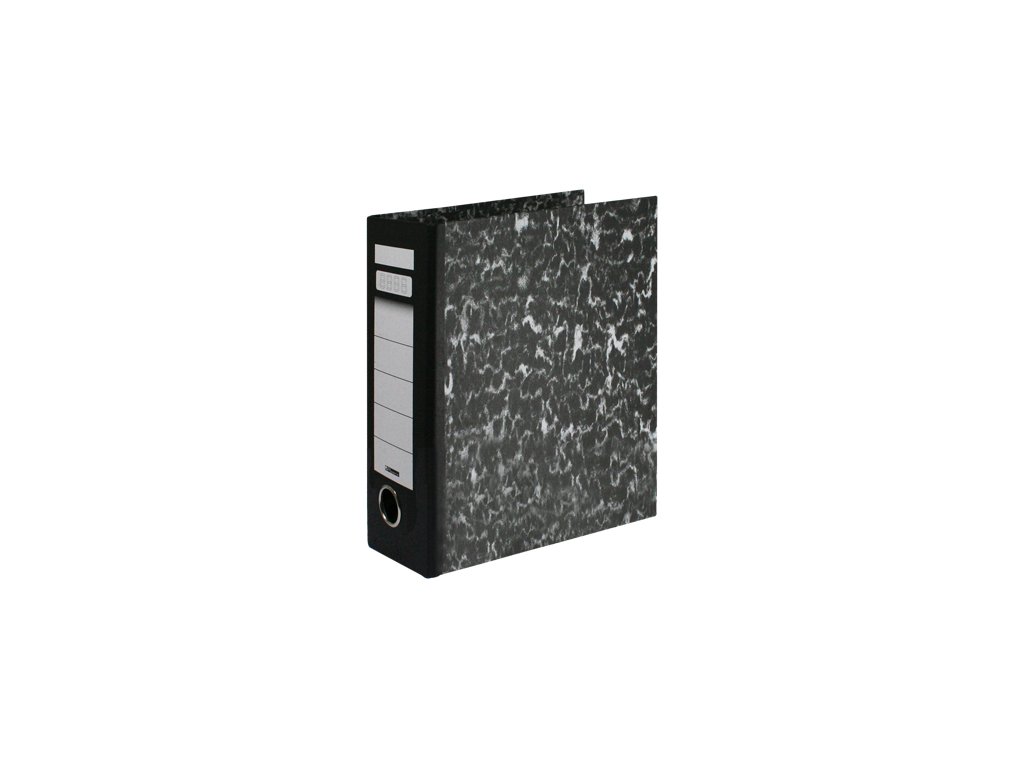 Pořadač celopapírový s vnějším mramorovým potahem, s natištěným zádovým štítkem. Hřbetní kroužek má kovové lemování. Pořadač nemá ochranné lišty a radozámek. Papír a lepenka vyrobená ze 100% recyklovaných vláken. Po použití je výrobek 100% recyklovatelný.Doplňkové parametry