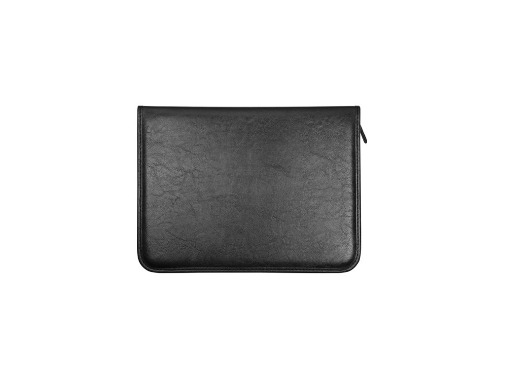 Portfólio se zipem, vybavené 4-kroužkovou mechanikou a klipem, s kapsaminěkolika velikostí. Vyrobené z imitace kůže, rozměry 25 x 43 cm, v černém provední.Doplňkové parametry