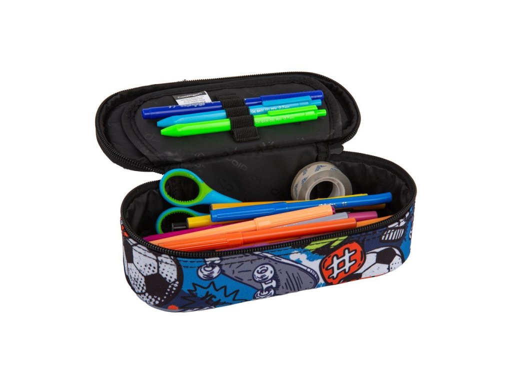 Školní pouzdro CoolPack Campus s jednou prostornou komorou. Jedna klopa s organizérem na psací potřeby a síťovaná kapsa na zip.Doplňkové parametry