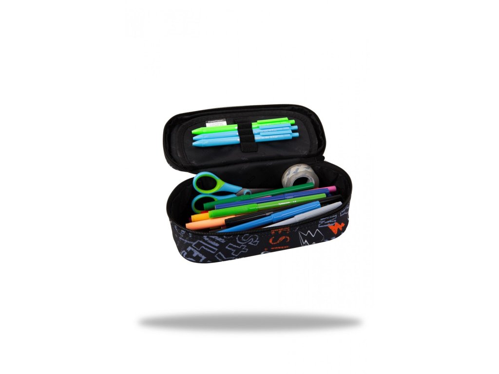 Školní pouzdro CoolPack Campus s jednou prostornou komorou. Jedna klopa s organizérem na psací potřeby a síťovaná kapsa na zip.Doplňkové parametry