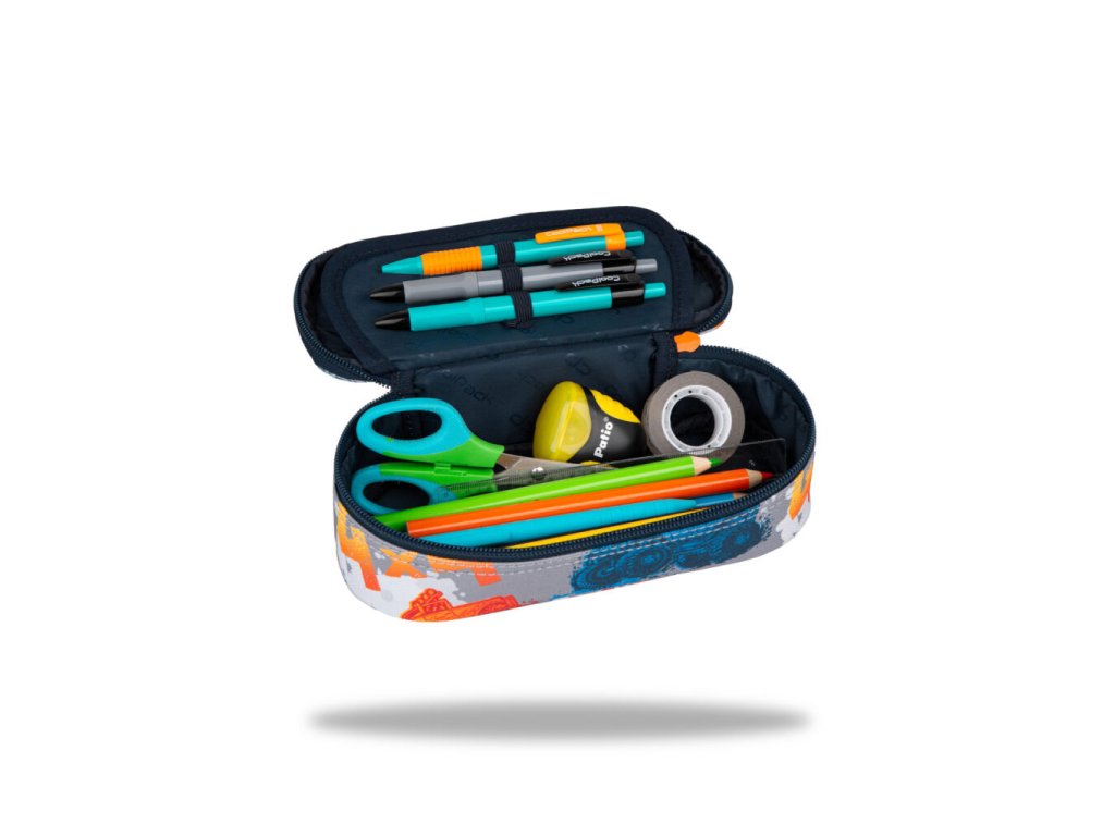 Školní pouzdro CoolPack Campus s jednou prostornou komorou. Jedna klopa s organizérem na psací potřeby a síťovaná kapsa na zip.Doplňkové parametry