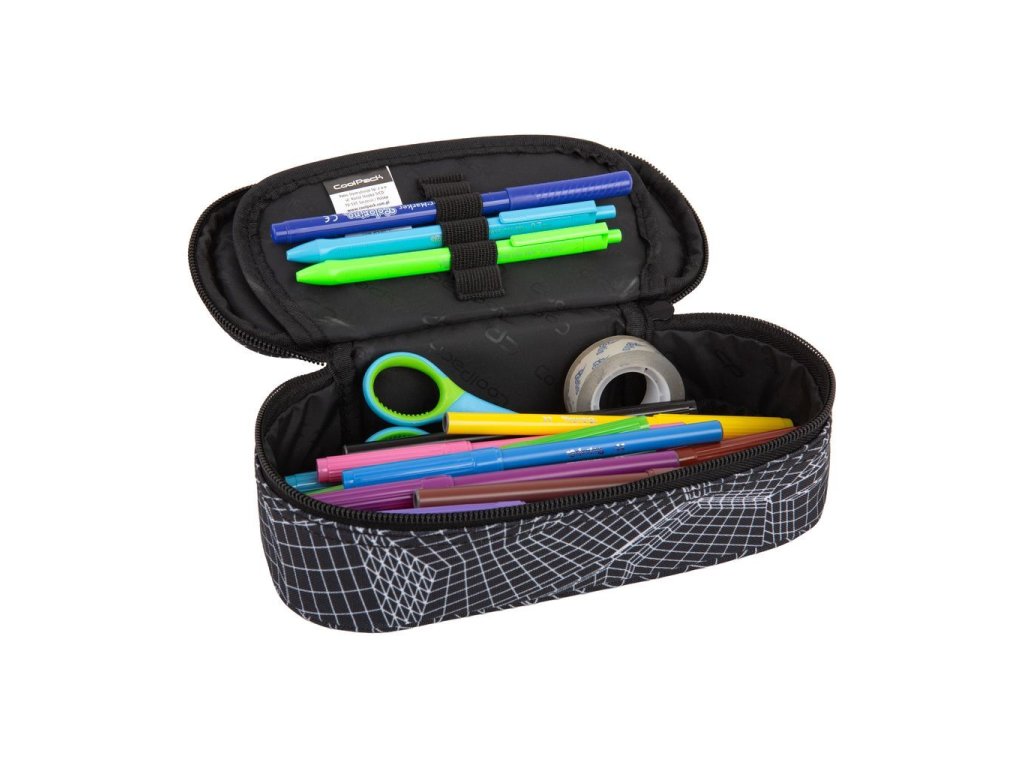 Školní pouzdro CoolPack Campus s jednou prostornou komorou. Jedna klopa s organizérem na psací potřeby a síťovaná kapsa na zip.Doplňkové parametry