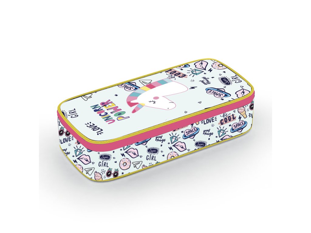 Školní pouzdro etue je opatřeno pevnými zipy, kapsičkou na zip a klopou s pevnými poutky po obou stranách. Pod klopou je místo pro volné uložení psacích potřeb nebo jiných drobností. Vhodné pro školáky na 2. stupni a starší studenty.Doplňkové parametry
