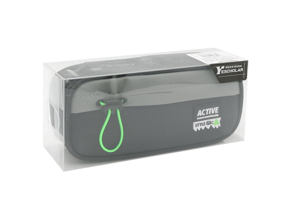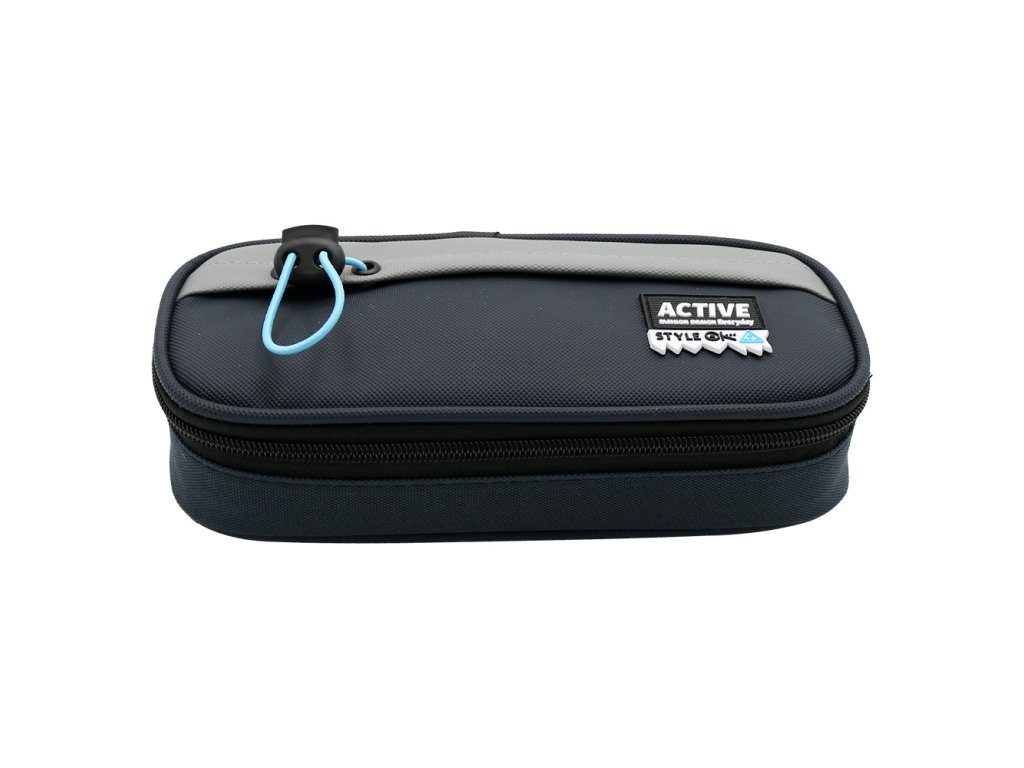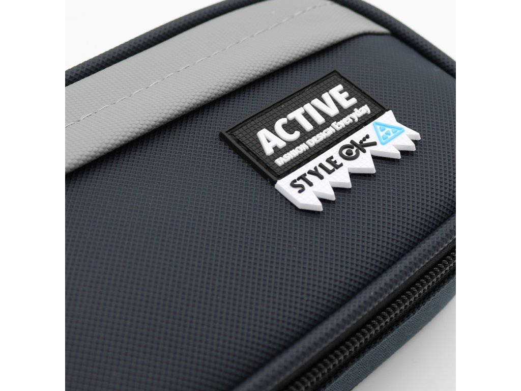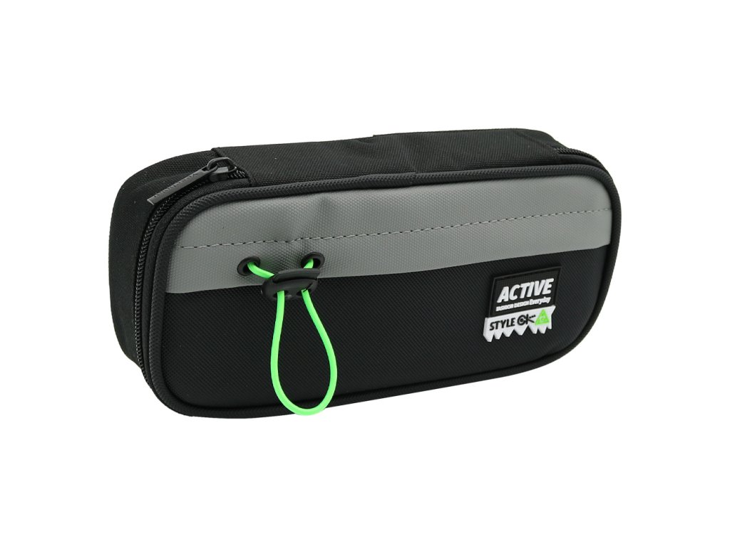 Lehoučké pouzdro / penál s gumovou nášivkou "ACTIVE" a stylovou gumičkou v neonové barvě (gumička v modré, zelené nebo žluté barvě).
