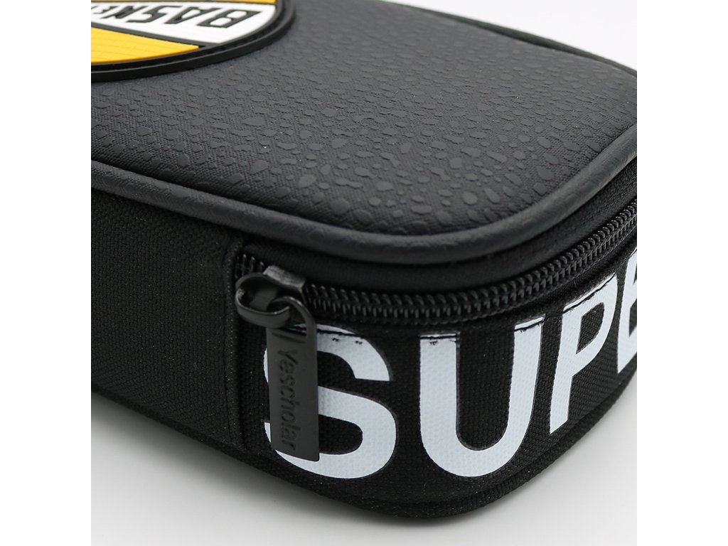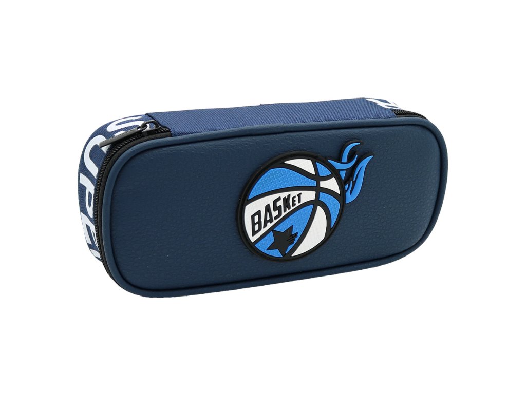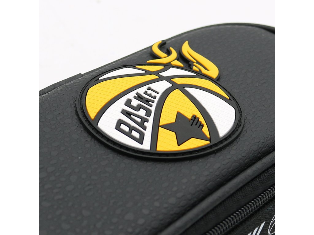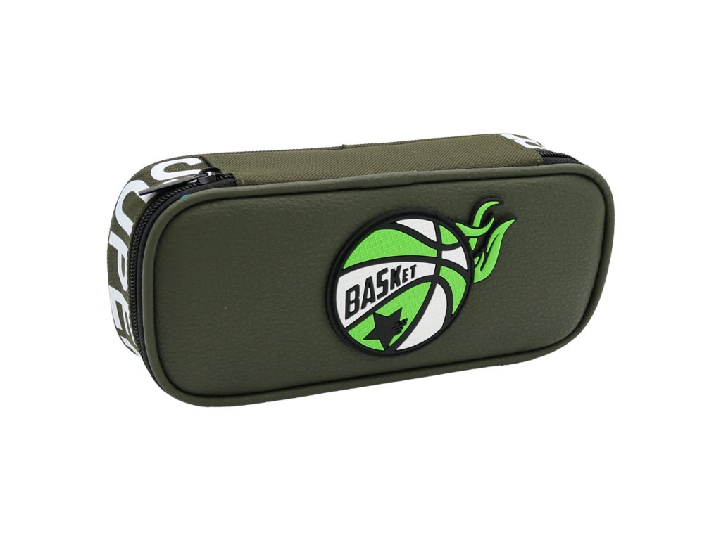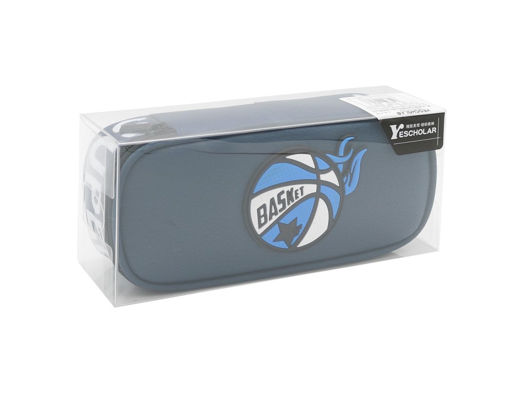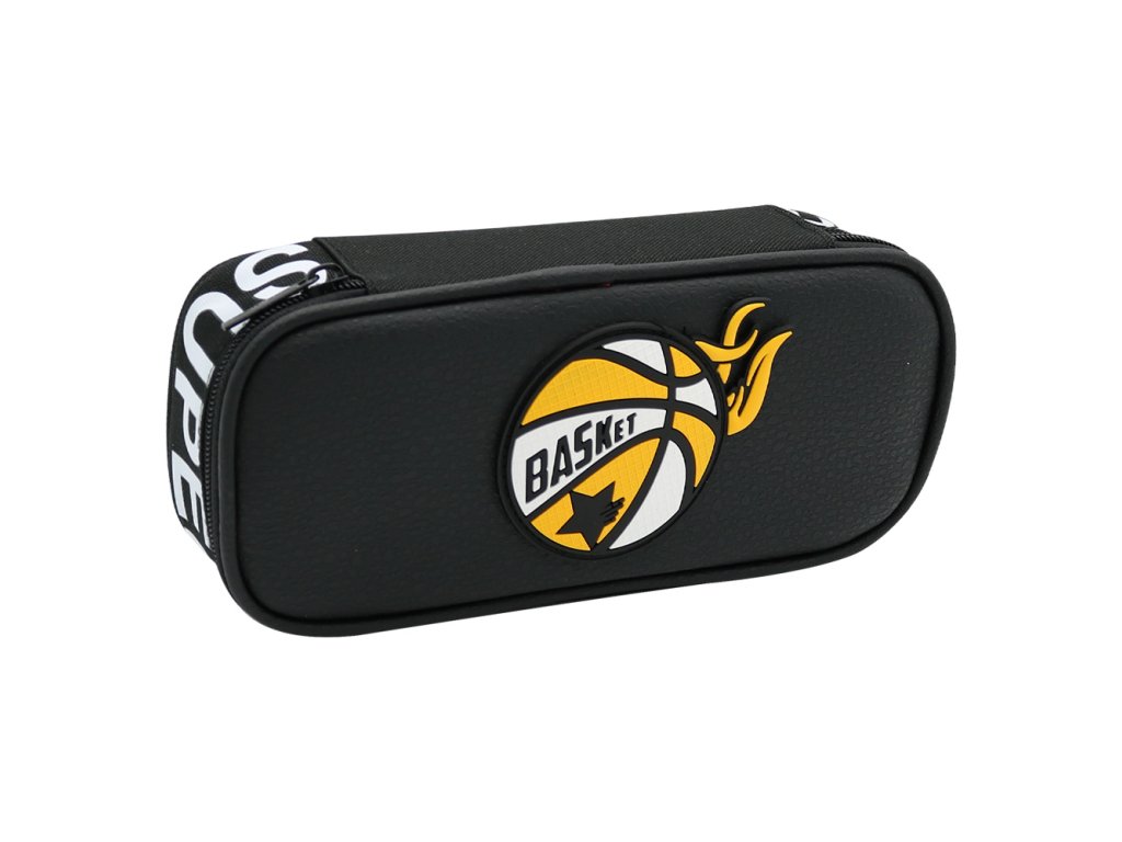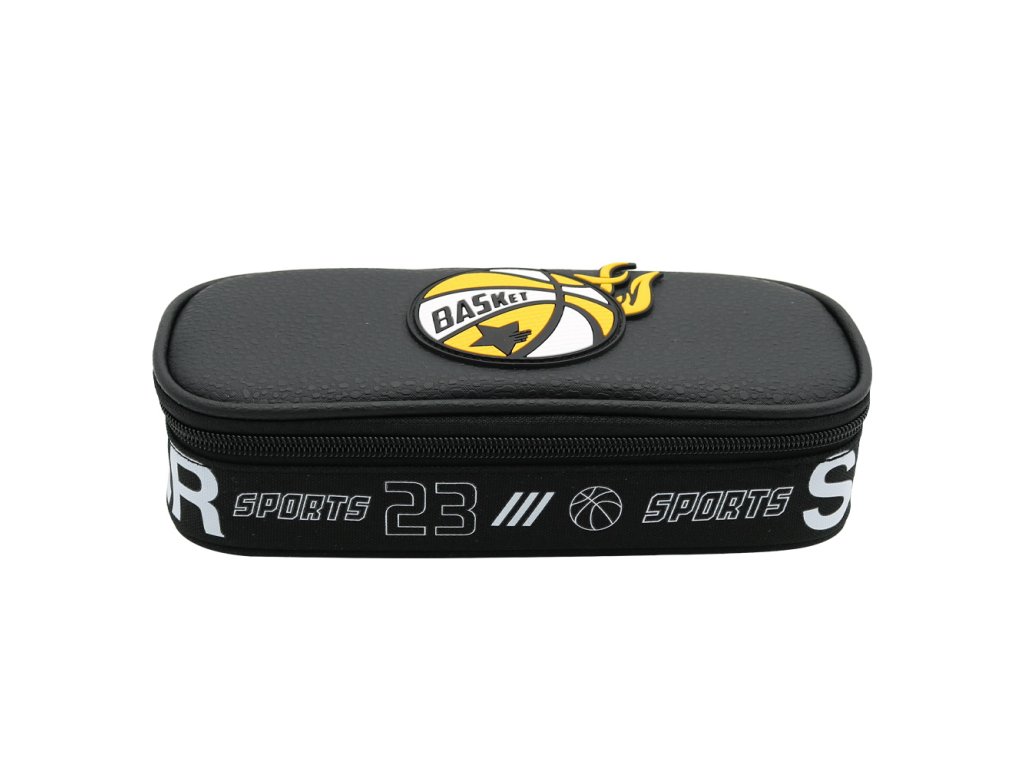 Lehoučké pouzdro / penál s gumovou nášivkou basketbalového míče, PU vrchní část s imitací kůže (Černý, Modrý, Zelený).