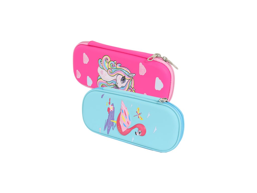 Školní pouzdro na tužky s 3D prvky na přední klopě. - 3D potisk - 1 zip - přihrádka na pera, tužky, gumu, ... - prázdný / bez vybavení - pogumovaný povrch - design: Flamingo, UnicornDoplňkové parametry