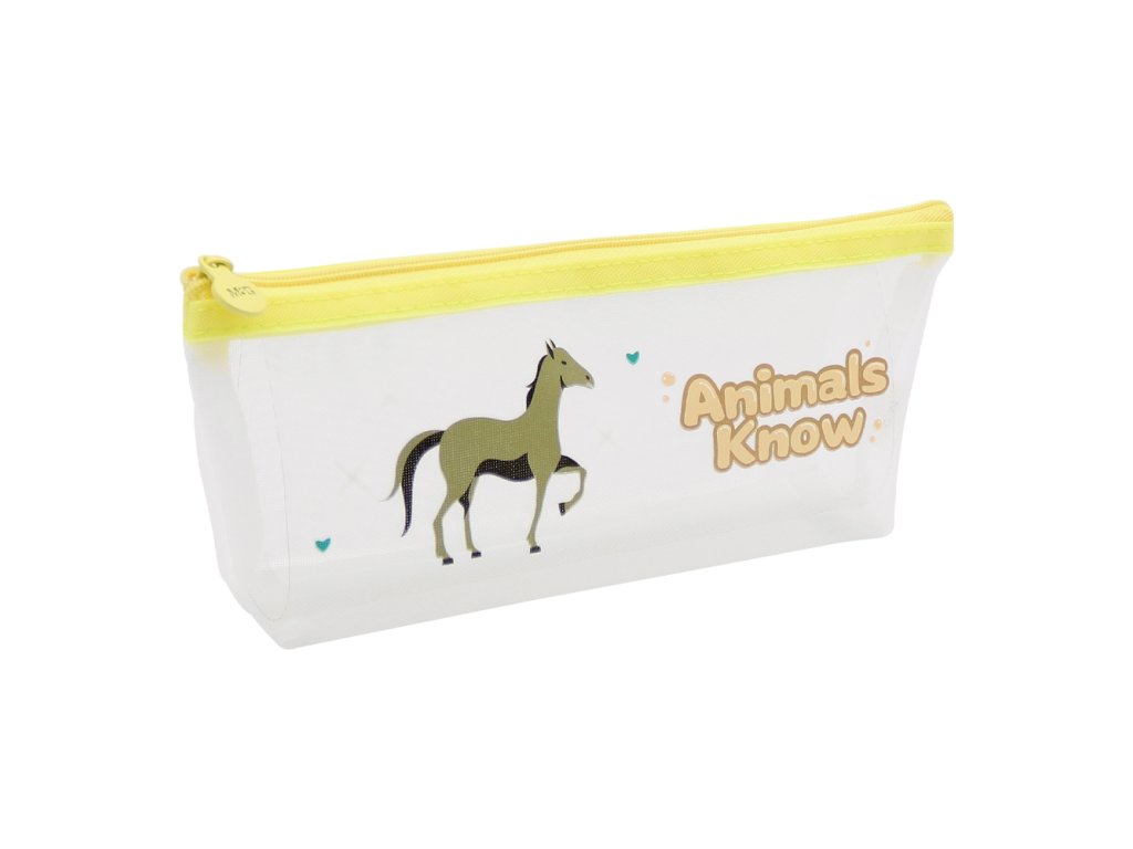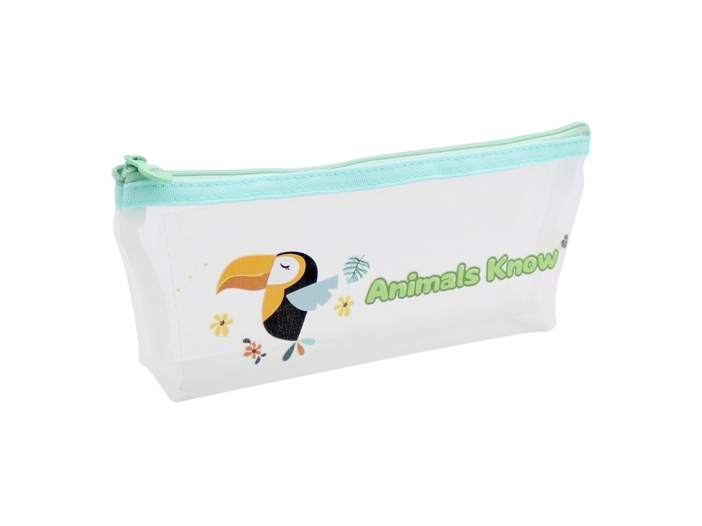 Dlouhý síťovaný penál, do kterého se pohodlně vejdou všechny potřeby pro psaní a kreslení. - přes průhlednou síťku je snadno vidět obsah uvnitř - pohodlné otevírání / zavírání zipem na vrchní straně - jemný motiv zvířátka na přední straně Zip a potisk ve 4 pastelových barvách: zelená, fialová, růžová a žlutáDoplňkové parametry