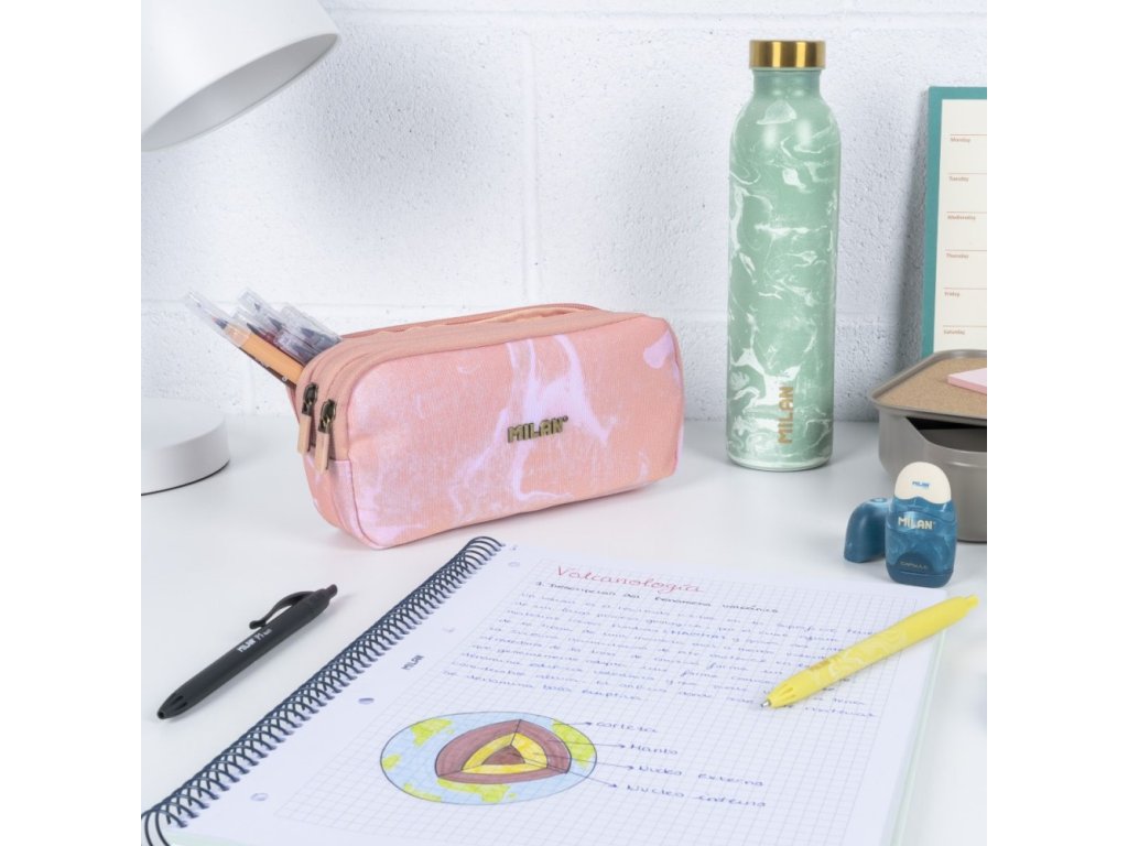 Pouzdro na pera MILAN 3-zipové, série Lava - růžový