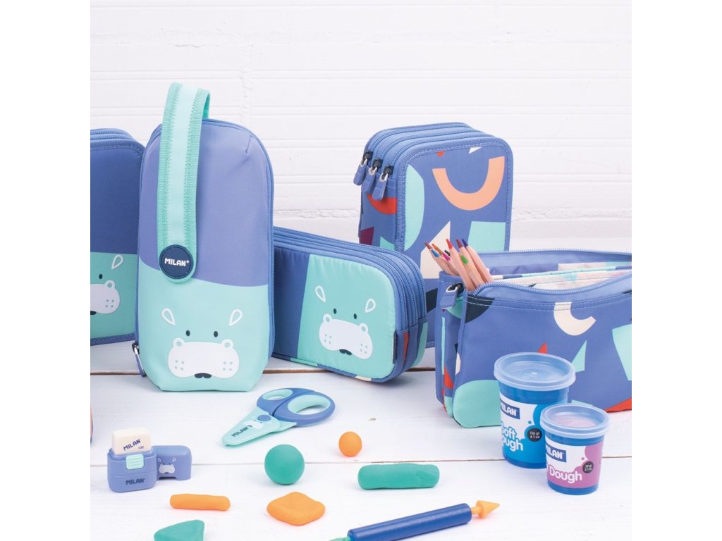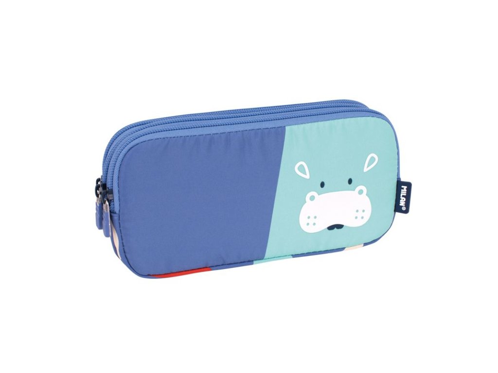 Pouzdro na pera MILAN 3-zipové Fun Animals série, modré