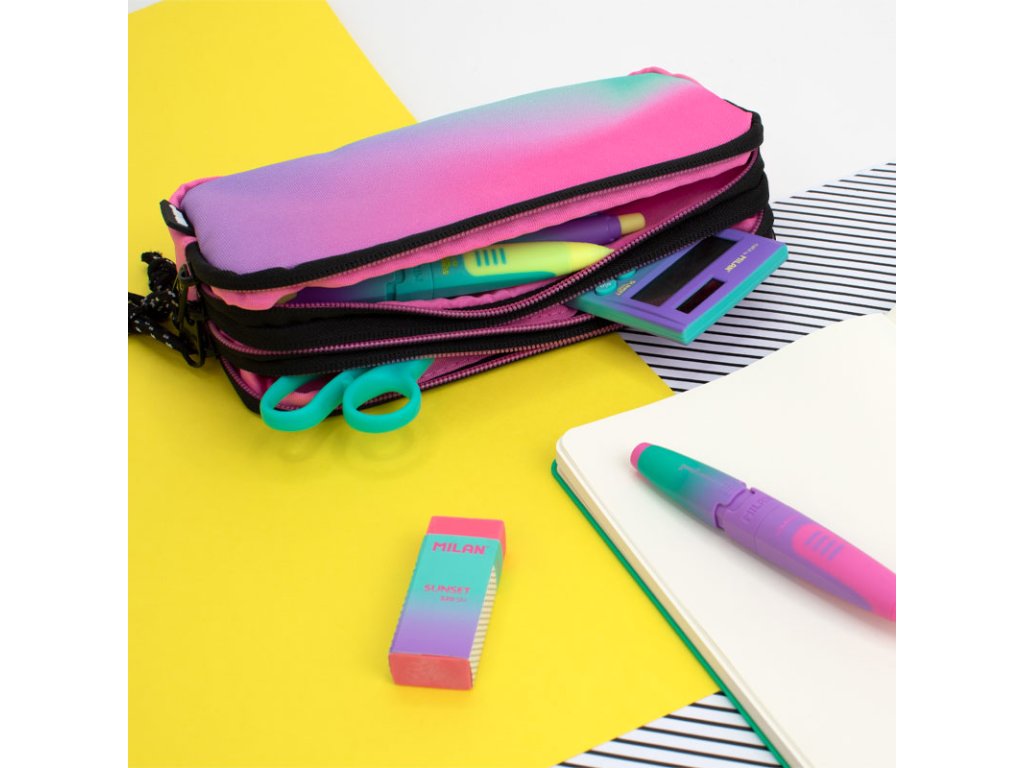 Pouzdro na pera MILAN 3-zipové Sunset, růžové