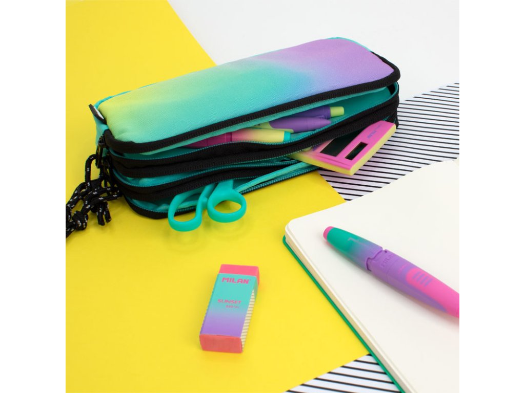 Pouzdro na pera MILAN 3-zipové Sunset, zelené