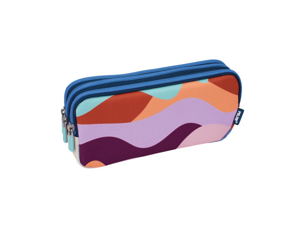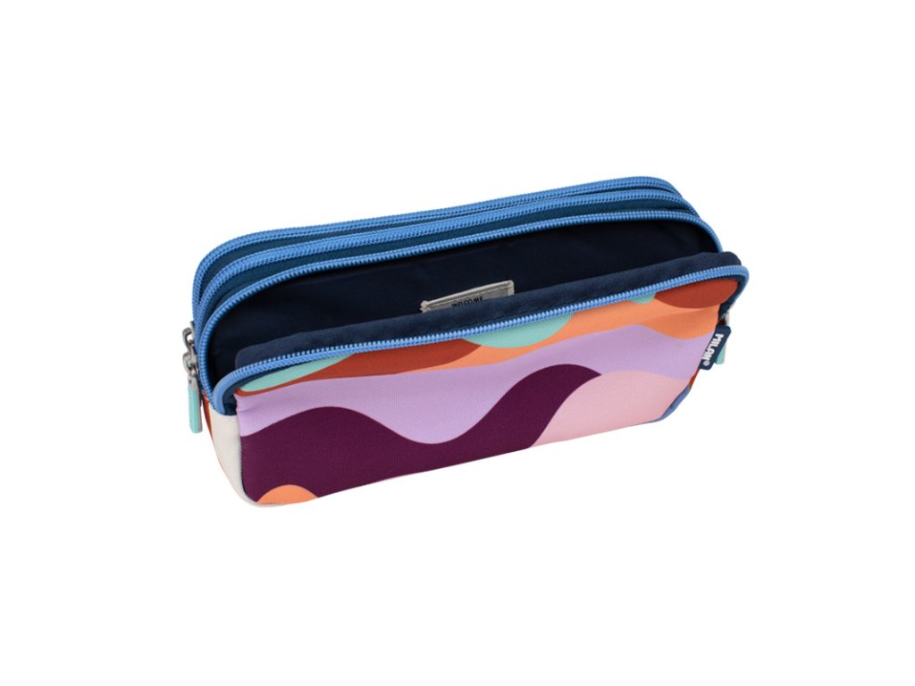 Pouzdro / penál se třemi zipy pro volně ložené psací a školní potřeby.