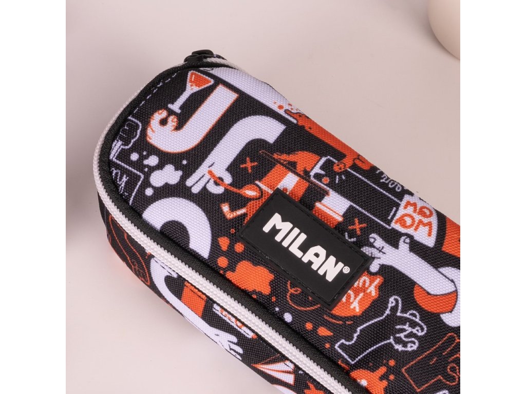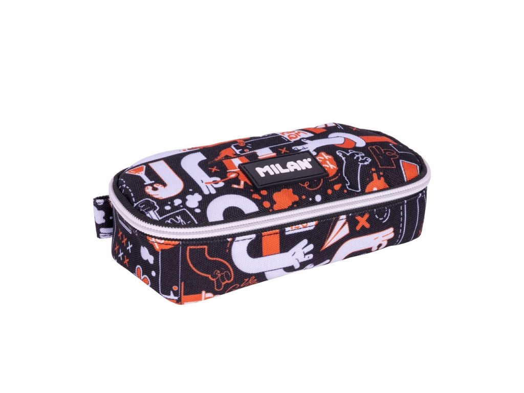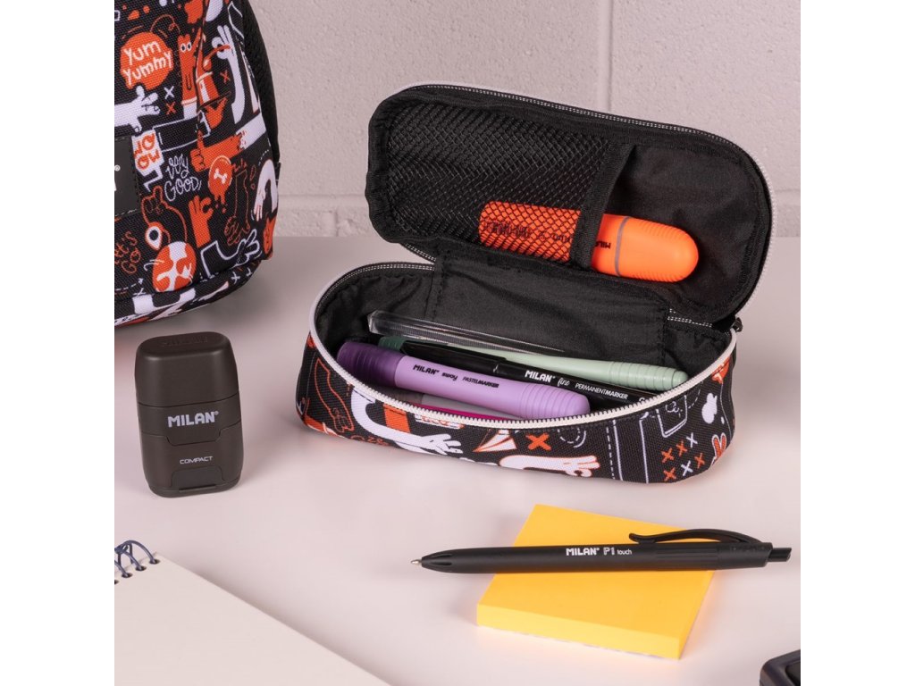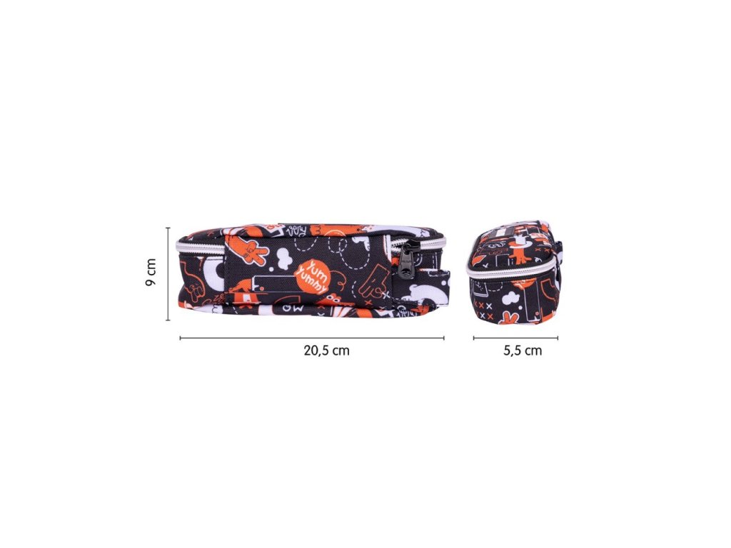 Školní oválný penál s vnitřní síťovanou kapsou.