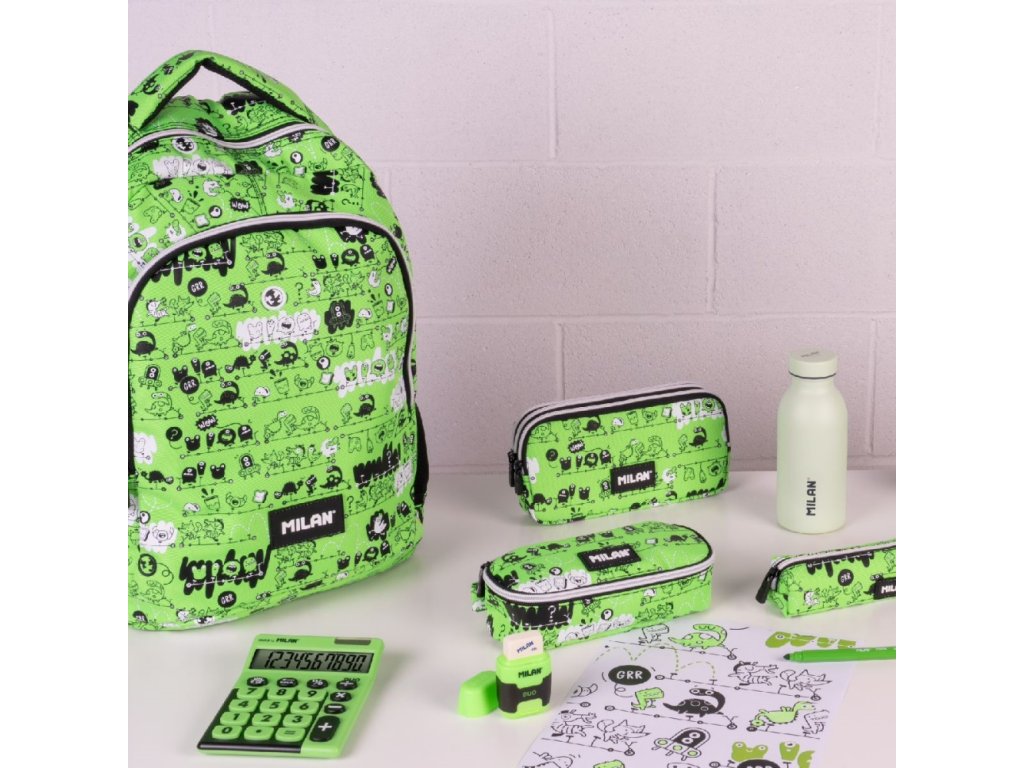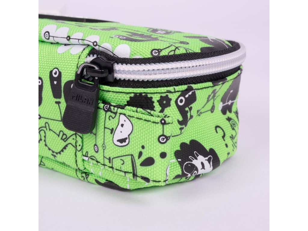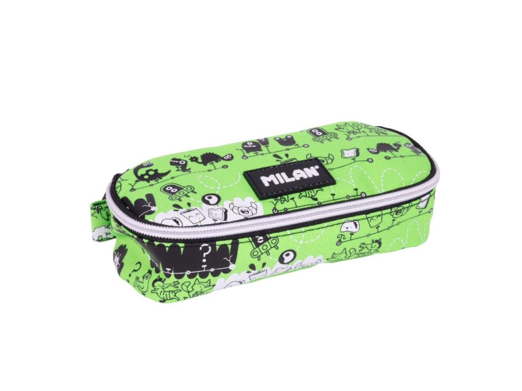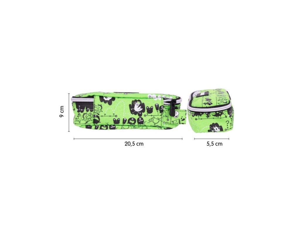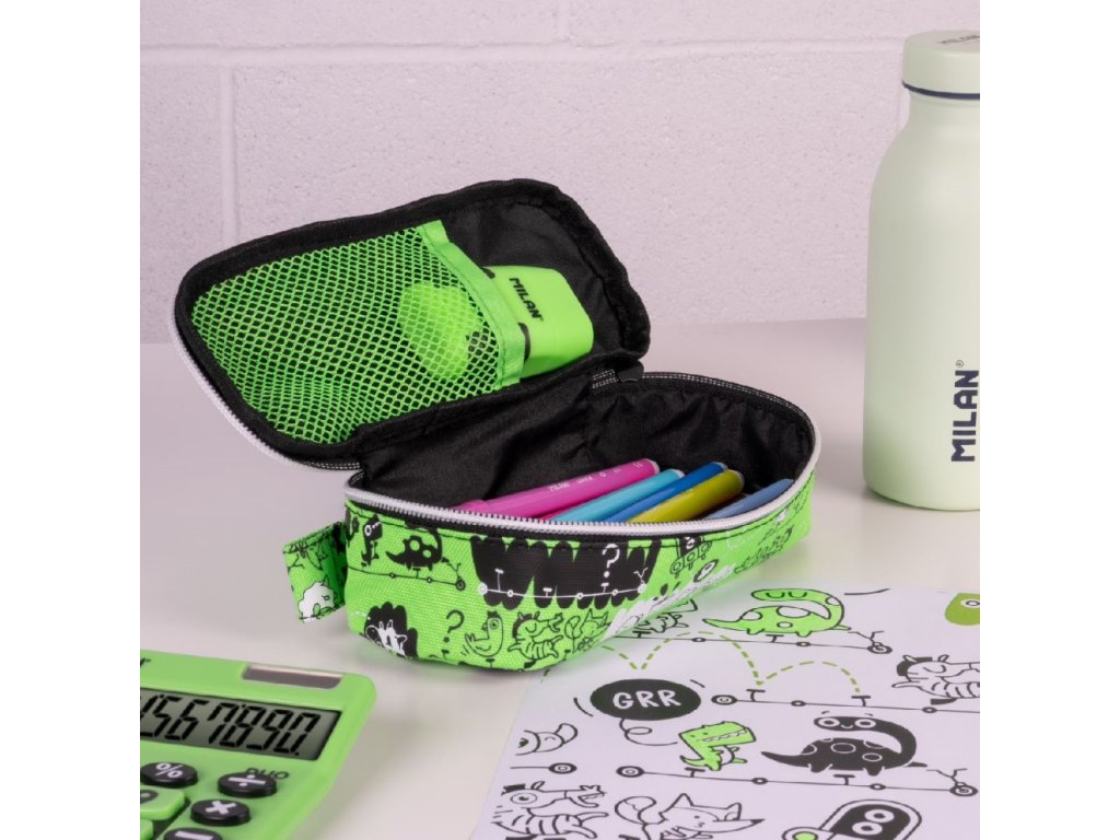Školní oválný penál s vnitřní síťovanou kapsou.