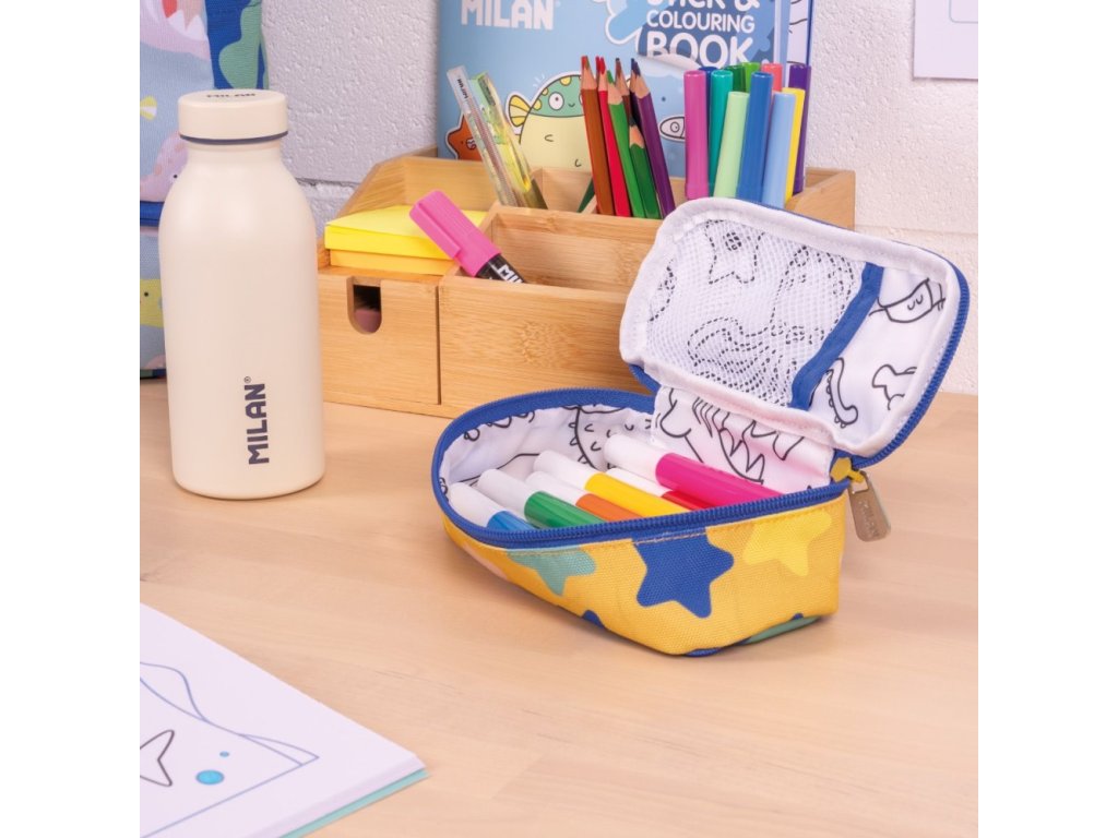 Penál oválného tvaru se snadno otevíratelným zipem.