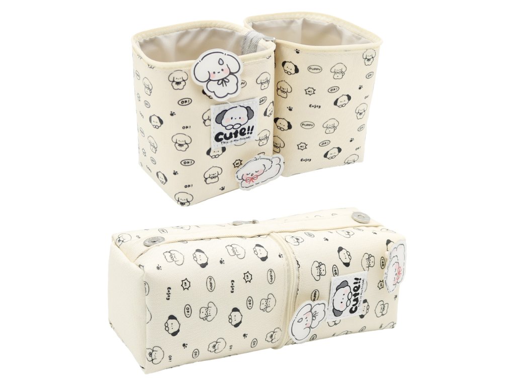 Lehoučké pouzdro /organizér pro psací potřeby s potiskem a dvěma odnímatelnými odznaky Beránka /Ovečky (Béžové, Růžové, Černé).