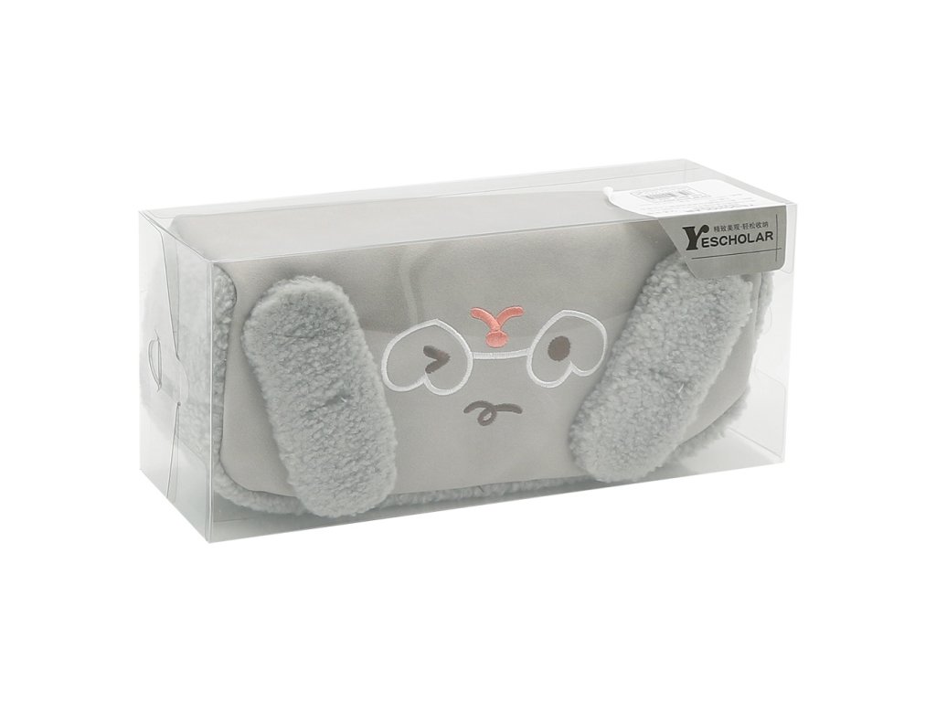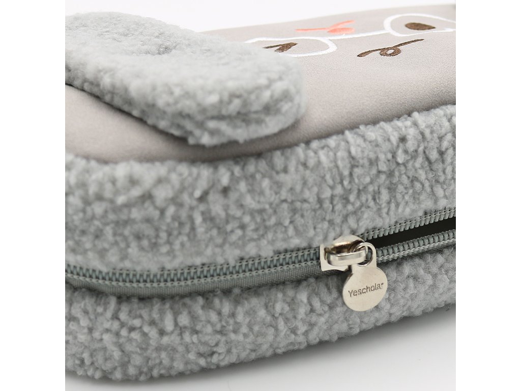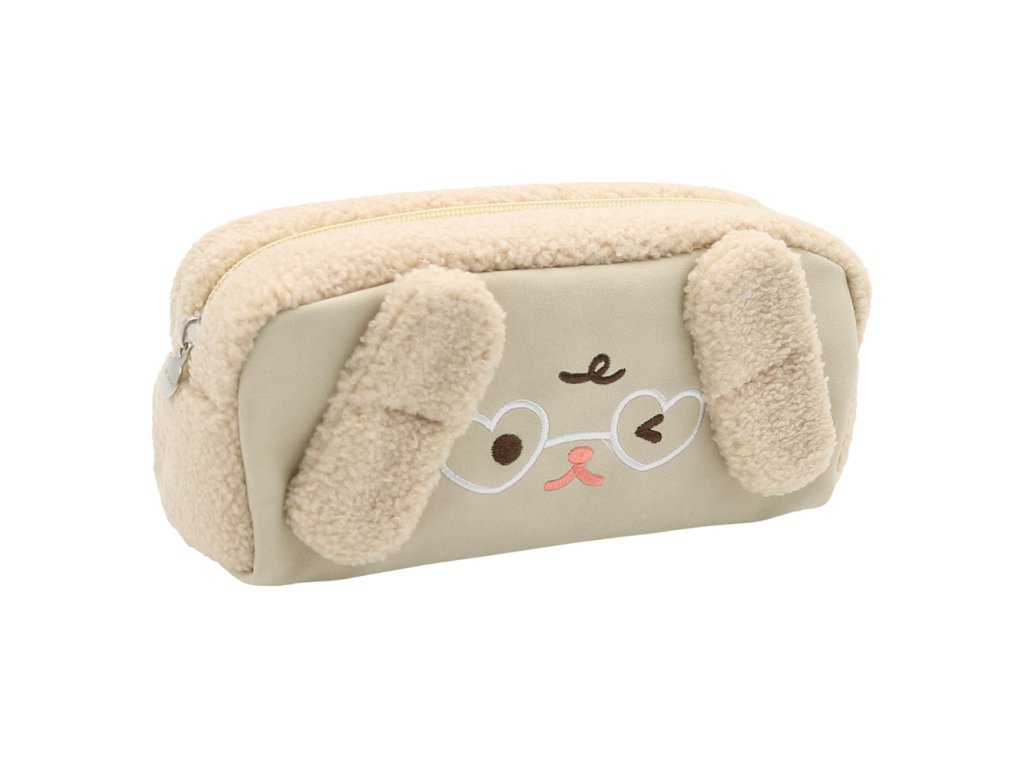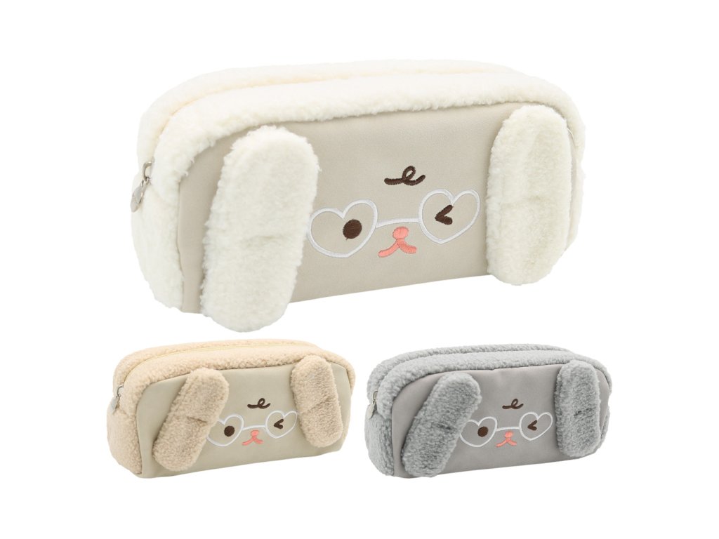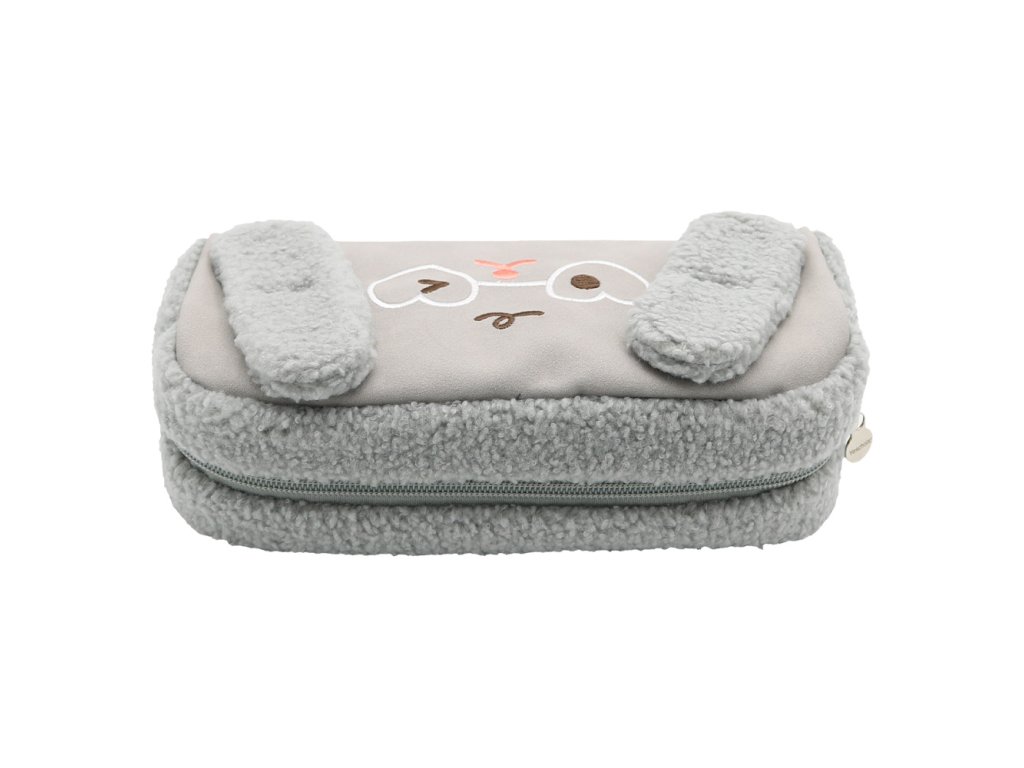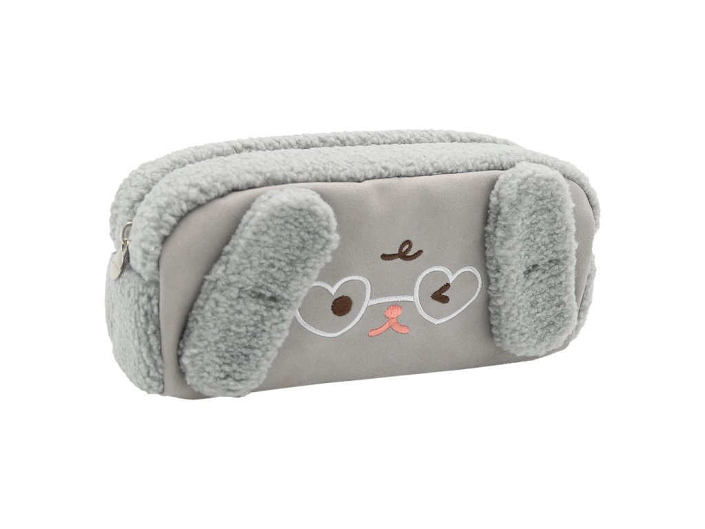 Heboučké pouzdro s ušima zajíčka a výšivkou očí ve tvaru srdíček, určené pro volně ložené školní potřeby (Béžové, Šedé).