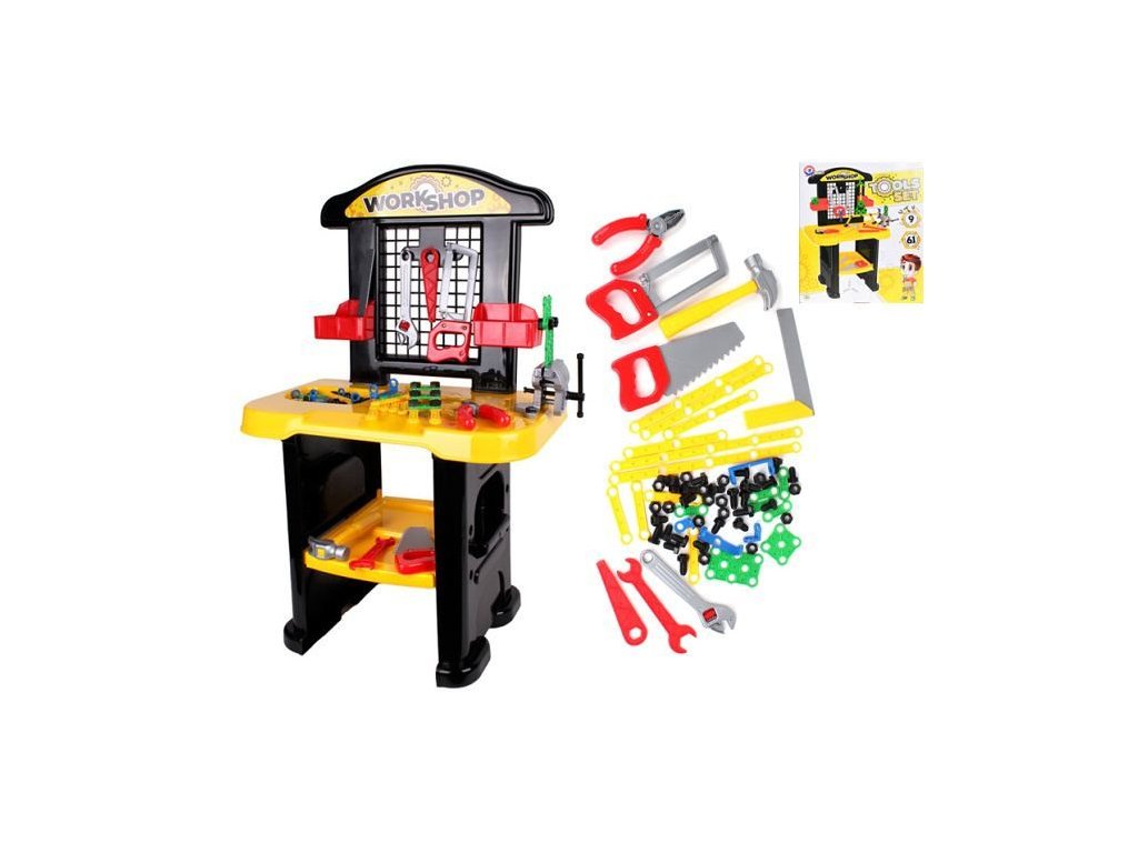 Krásný propracovaný pracovní stůl s nářadím pro každého malého kutila Sada obsahuje 61 ks Pro děti od 3 letDoplňkové parametry