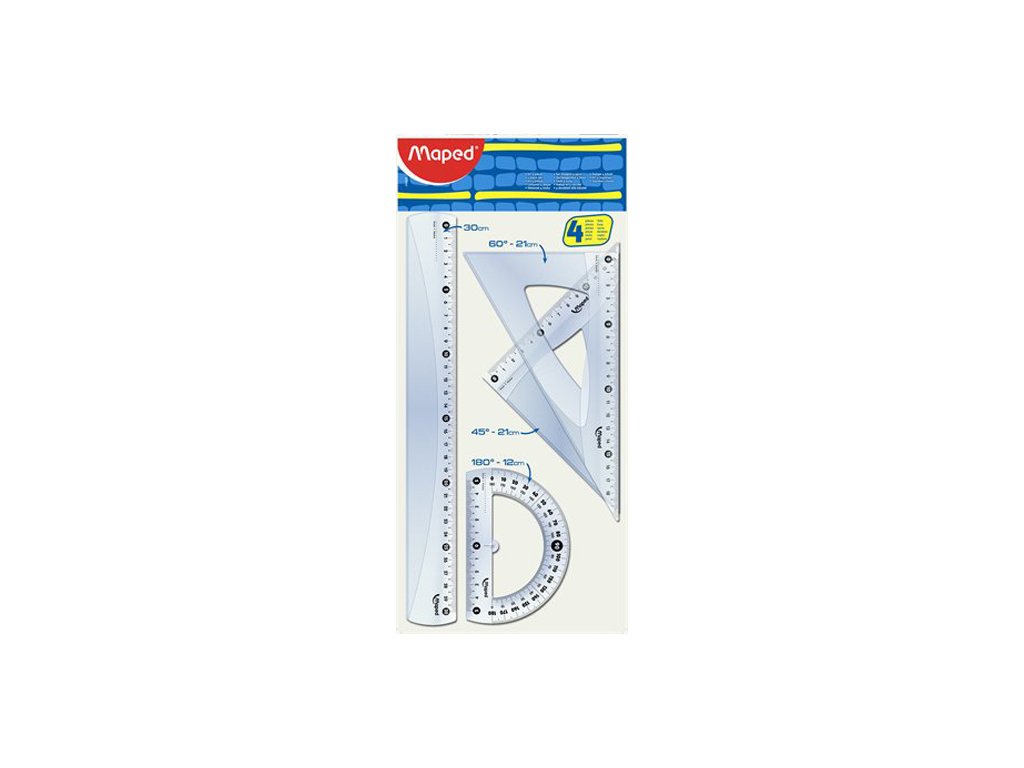 Pravítko, 4 kusová maxi sada, plastová