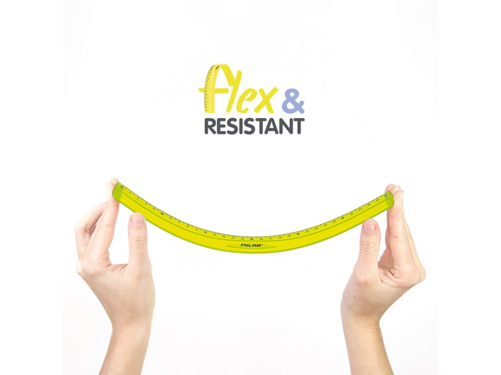Ohebné pravítko MILAN FLEX. Délka 30 cm. Barva: transparentní žlutá. Flexibilní a odolný materiál.Doplňkové parametry